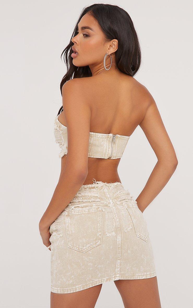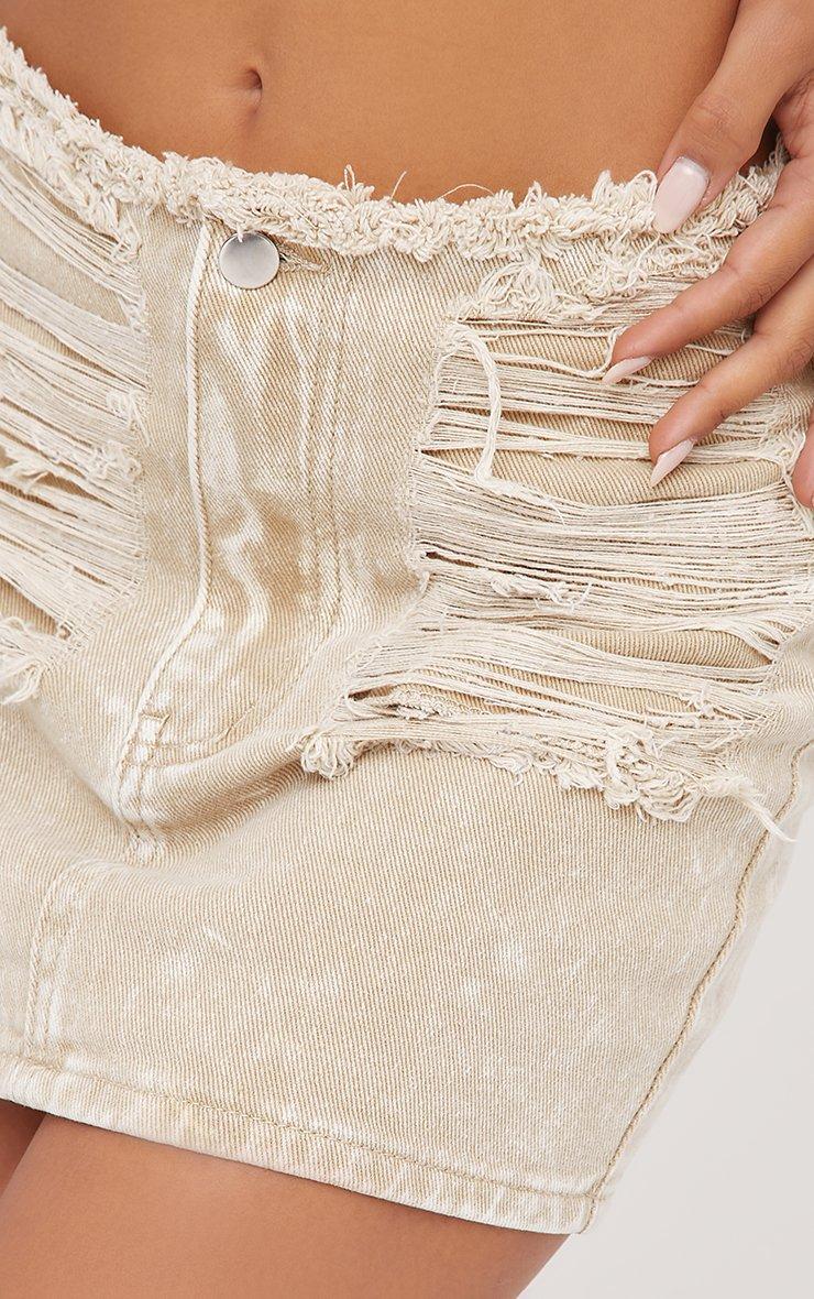 Distressed Detail Mini Skirt In Washed Stone Denim
