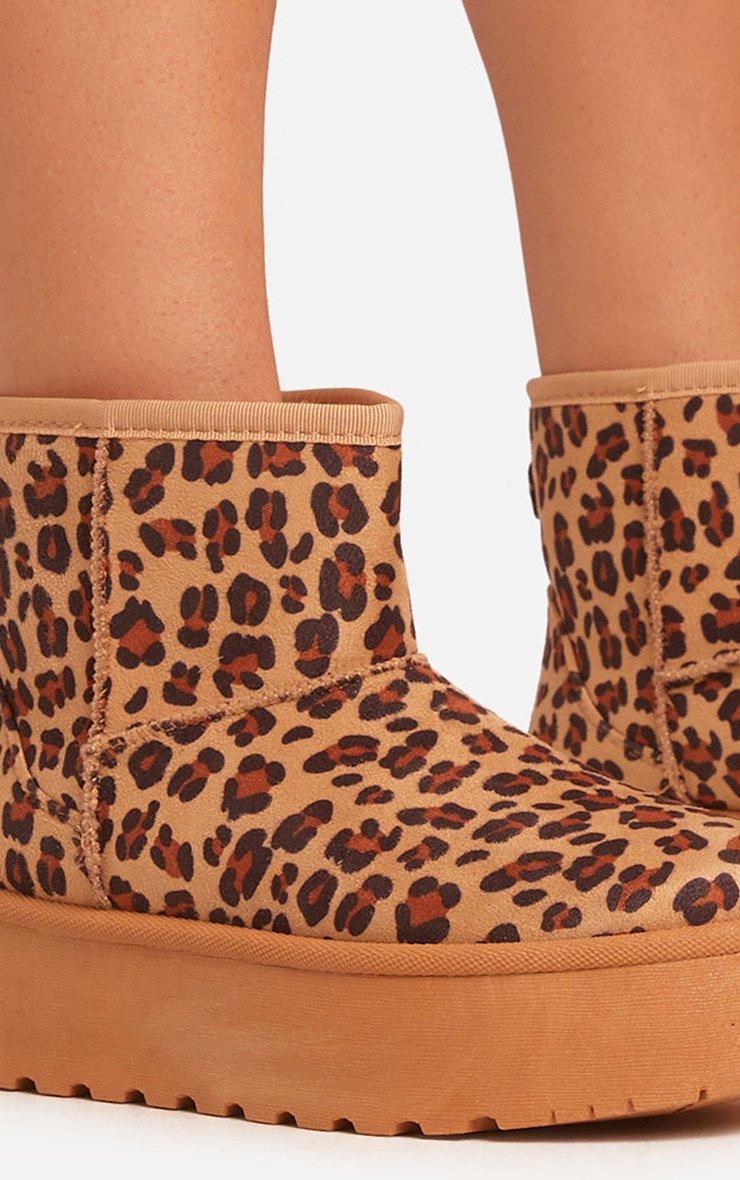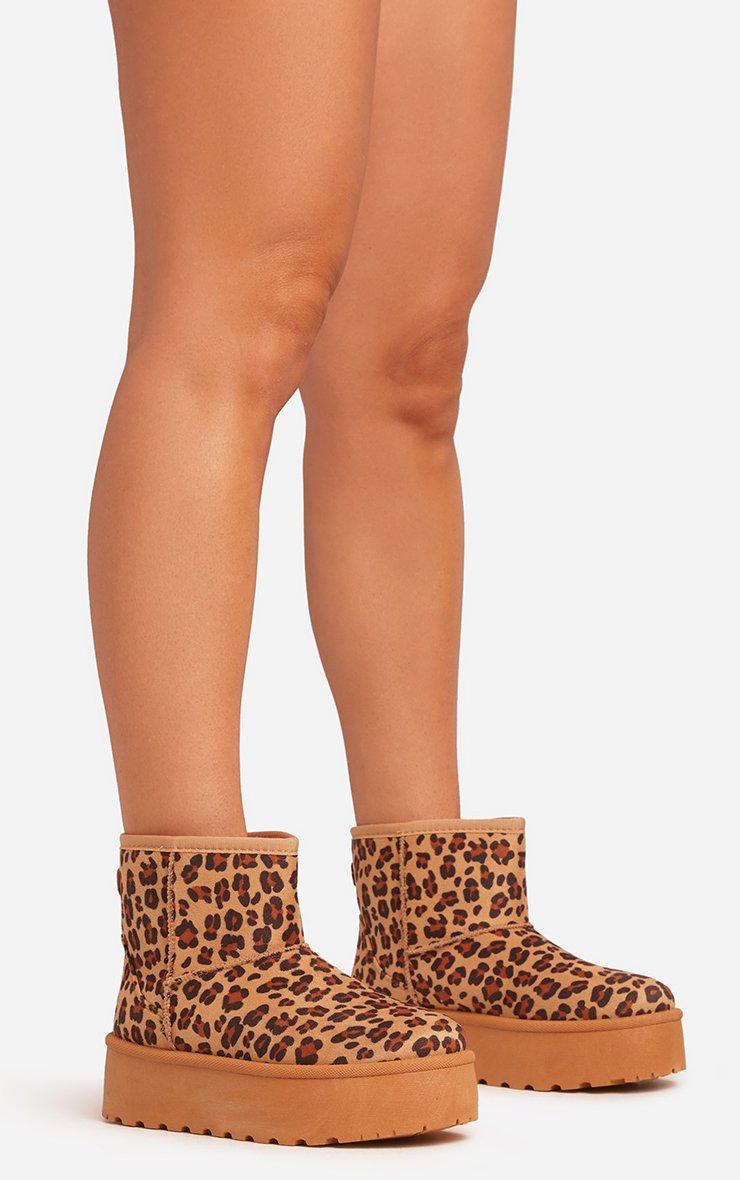 Wyatt Platform Sole Faux Fur Lining Ankle Boot In Leopard Print Faux Suede