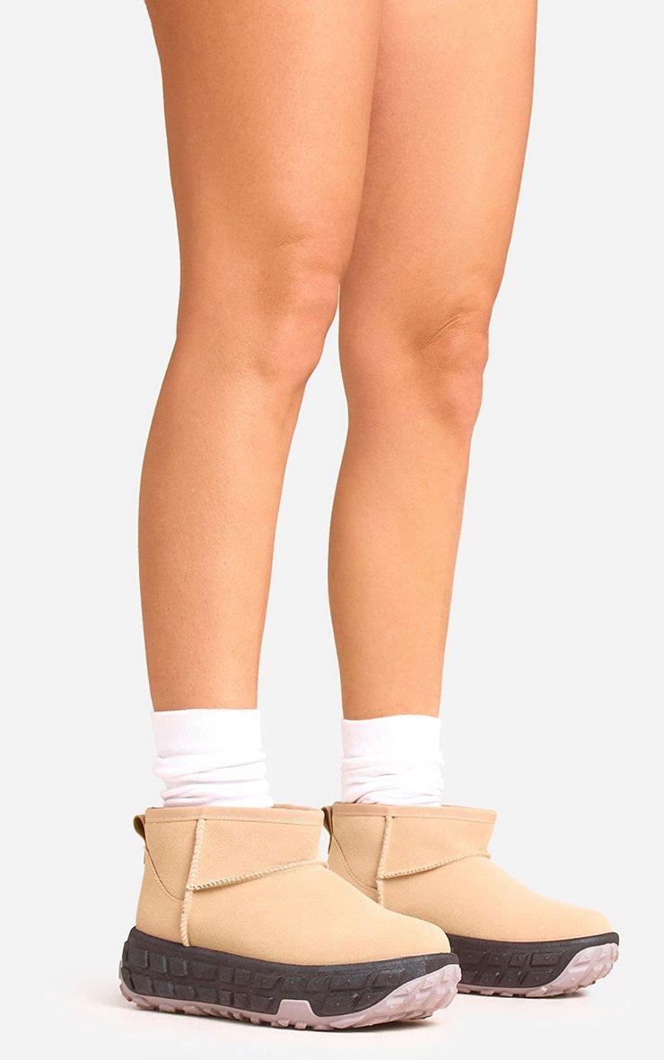 Keep it cute and cosy in our Boulevard Chunky Platform Sole Ankle Boot In Beige Faux Suede. These beige platform ankle boots will elevate your cold-weather fits with their unique style and beige faux suede finish. Perfect for AW24, these ankle boots bring comfort and sass in one!