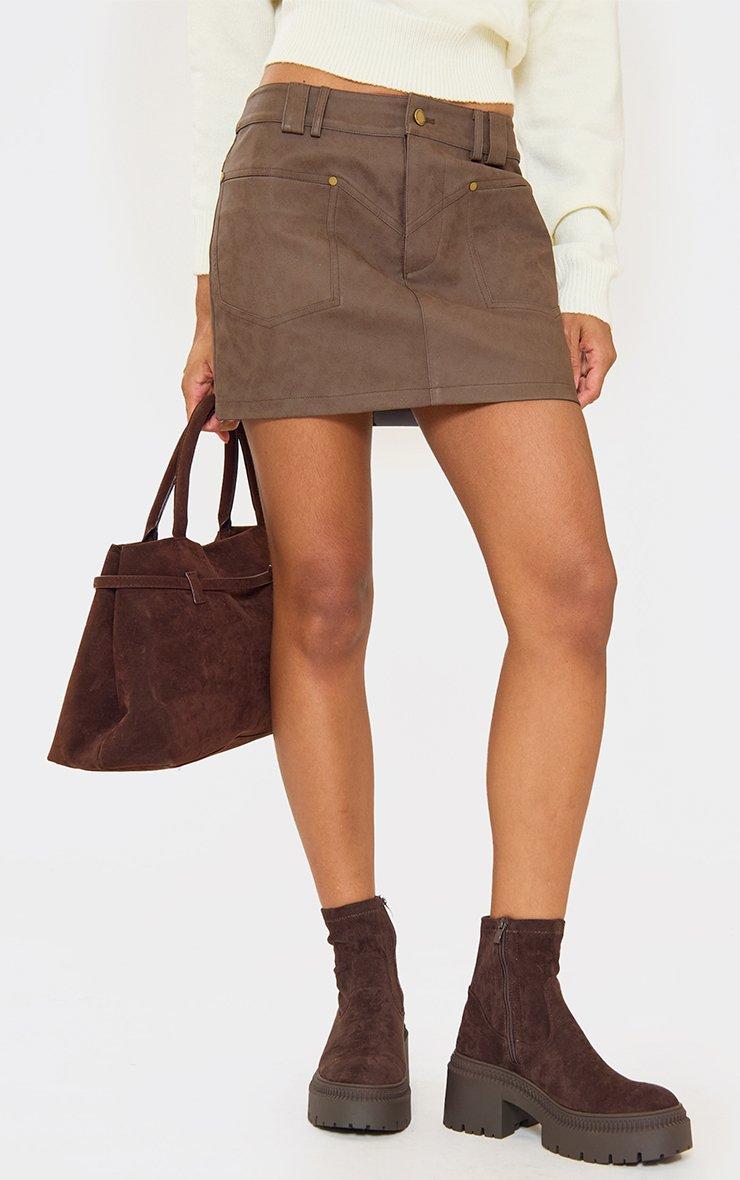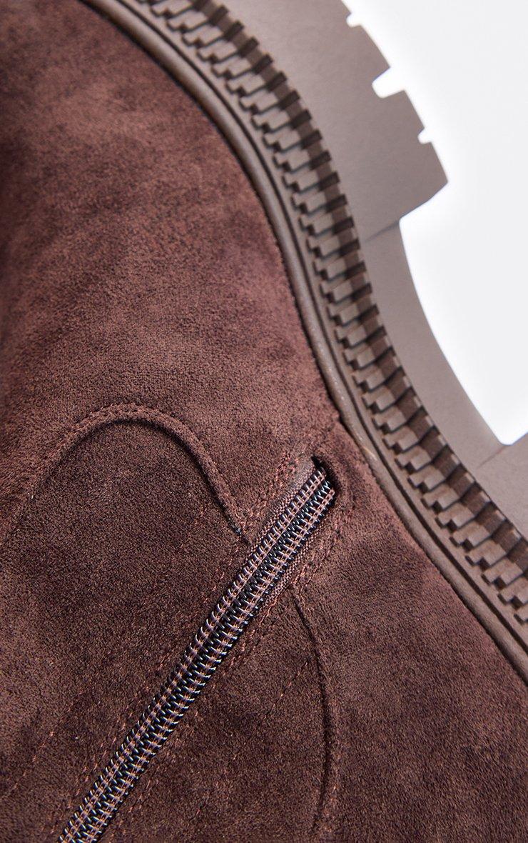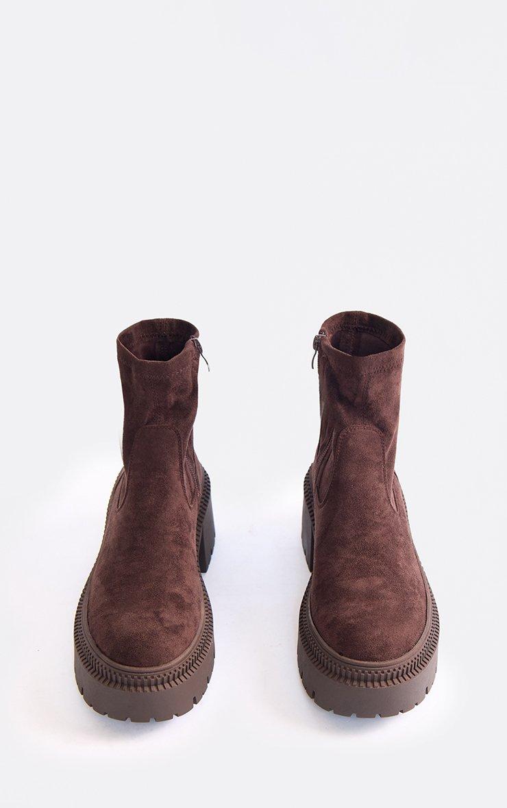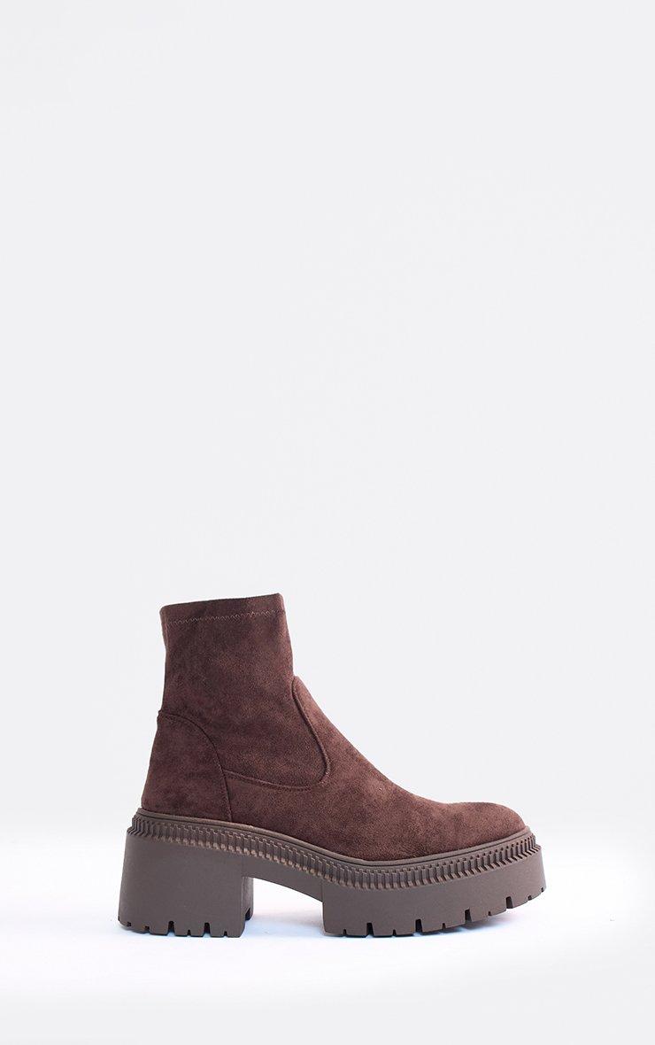 Sequence Chunky Sole Ankle Sock Boot In Brown Faux Suede