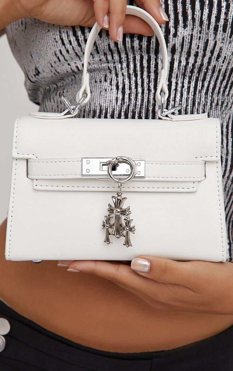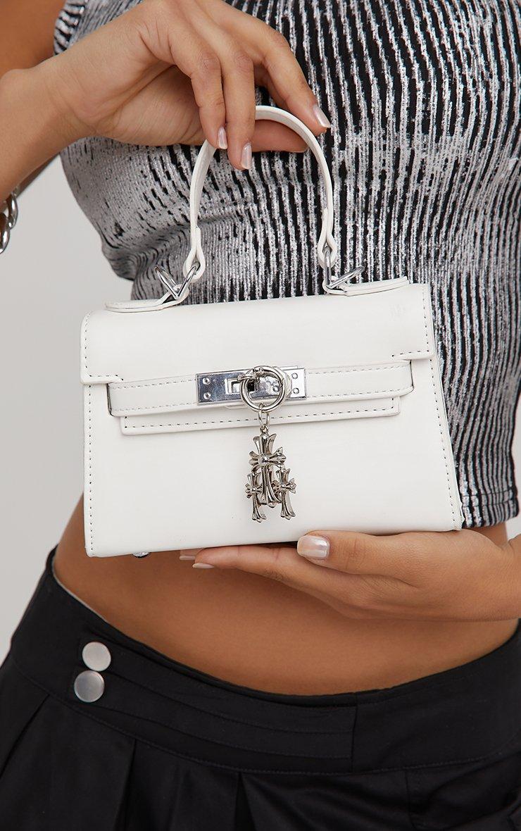 Genesis Crucifix Detail Mini Tote Bag In White Faux Leather