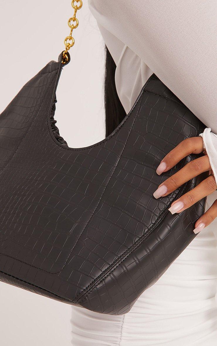 Hayden Ruched Detail Chain Strap Shoulder Bag In Black Croc Print Faux Leather