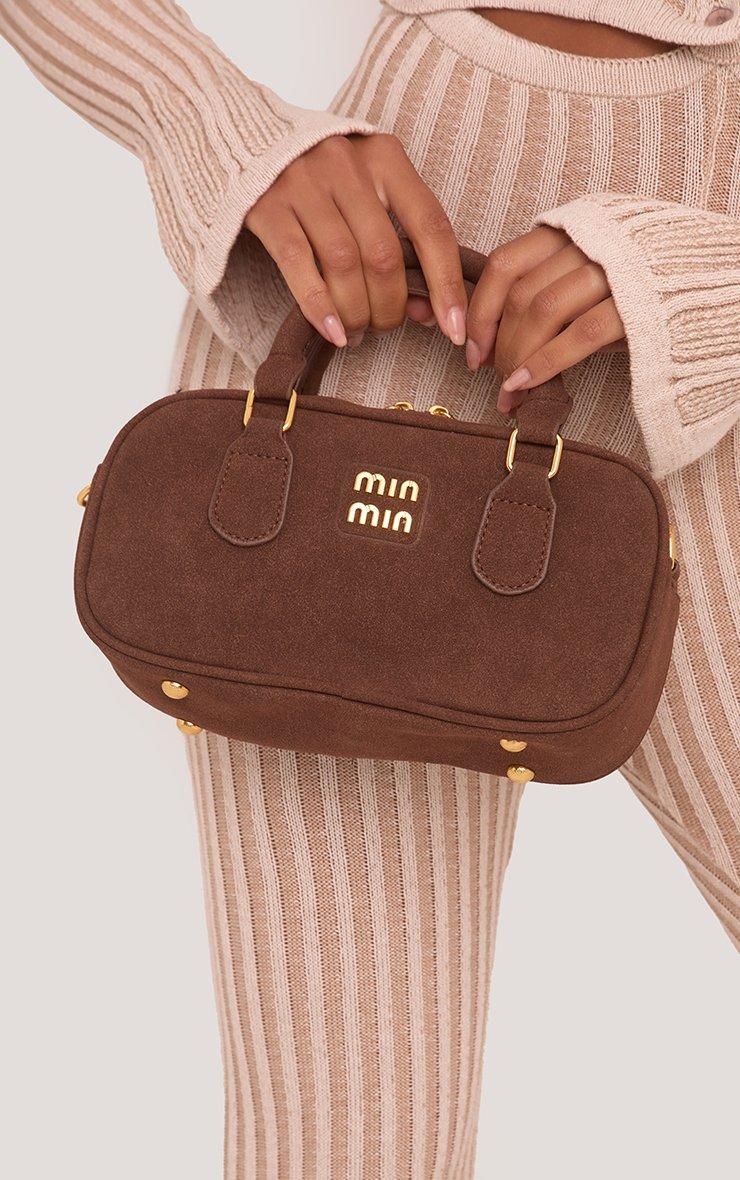 Doll, grab this brown faux suede bag with logo detailing for a sleek, elevated look. Spacious, stylish, and totally on-trend – it’s the perfect piece to finish off any outfit with some serious attitude.