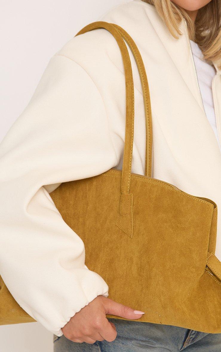 Complete your look, doll! Featuring a light khaki faux suede material, this slouched oversized shoulder bag adds the perfect mix of laid-back chic and effortless elegance to your outfit.