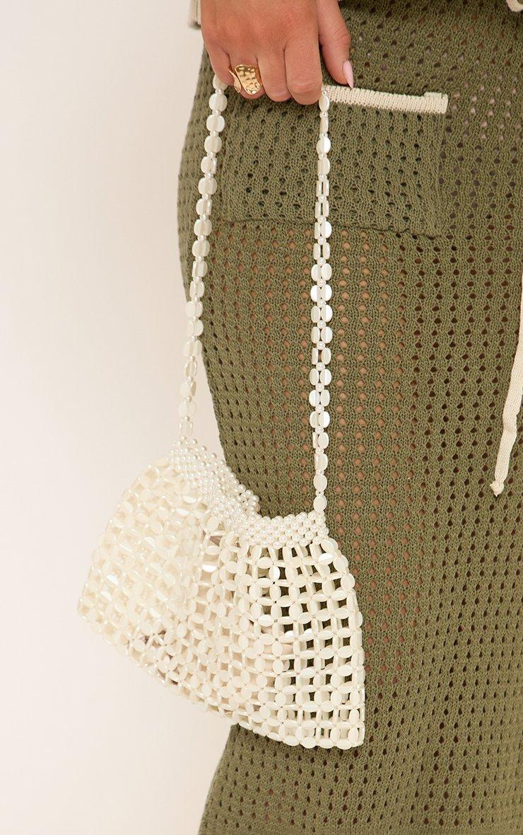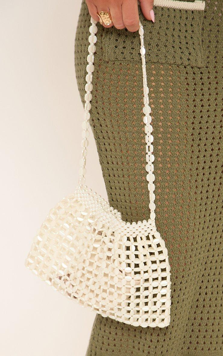 Junya Beaded Detail Shaped Cross Body Bag In Cream