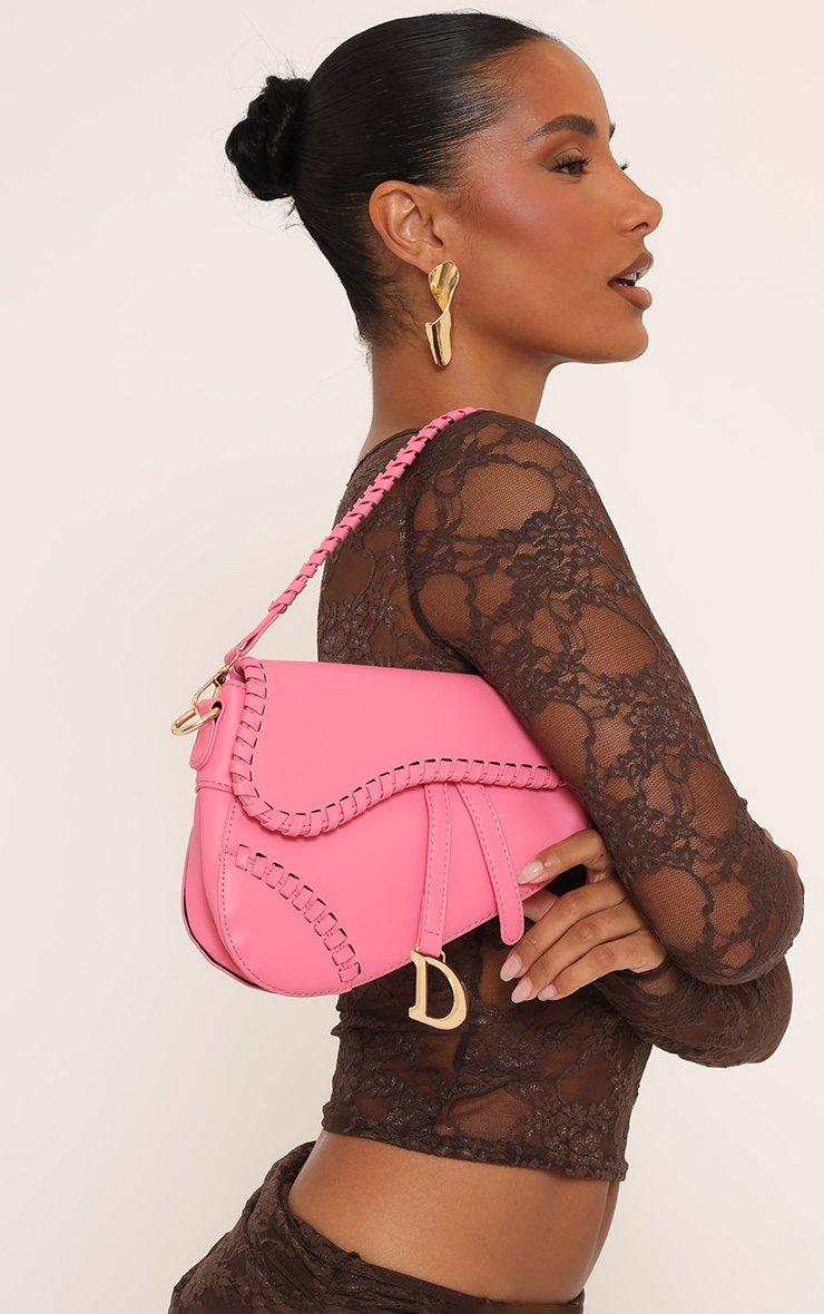 Add a playful pop to your look with this pink faux leather shoulder bag. Featuring contrast stitch trim and a sleek ring detail, it's the perfect statement piece to carry your essentials in style.