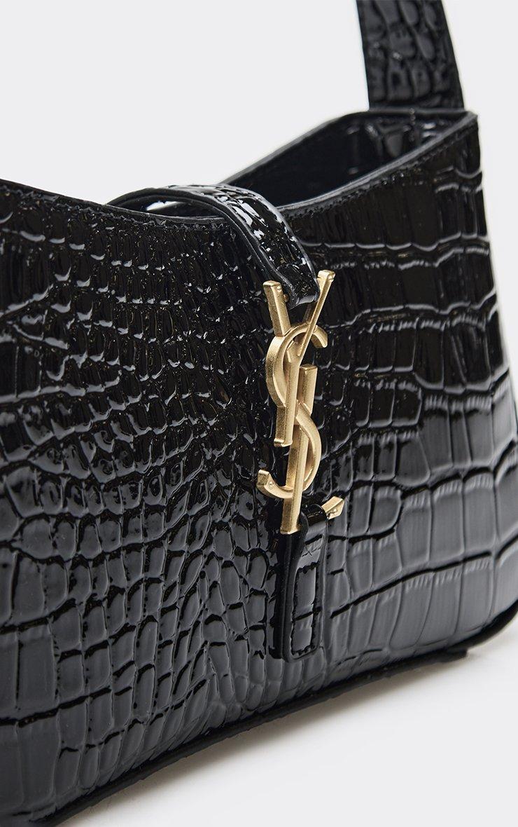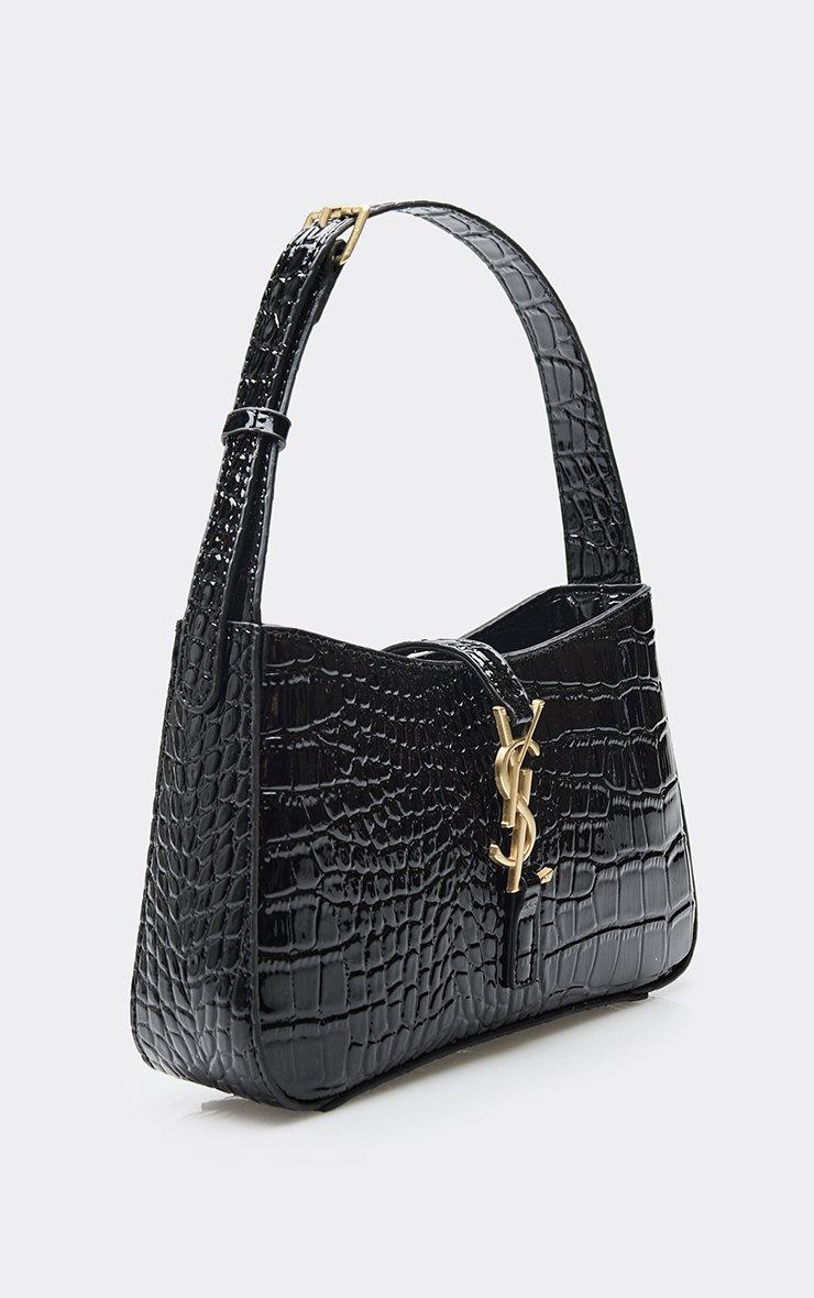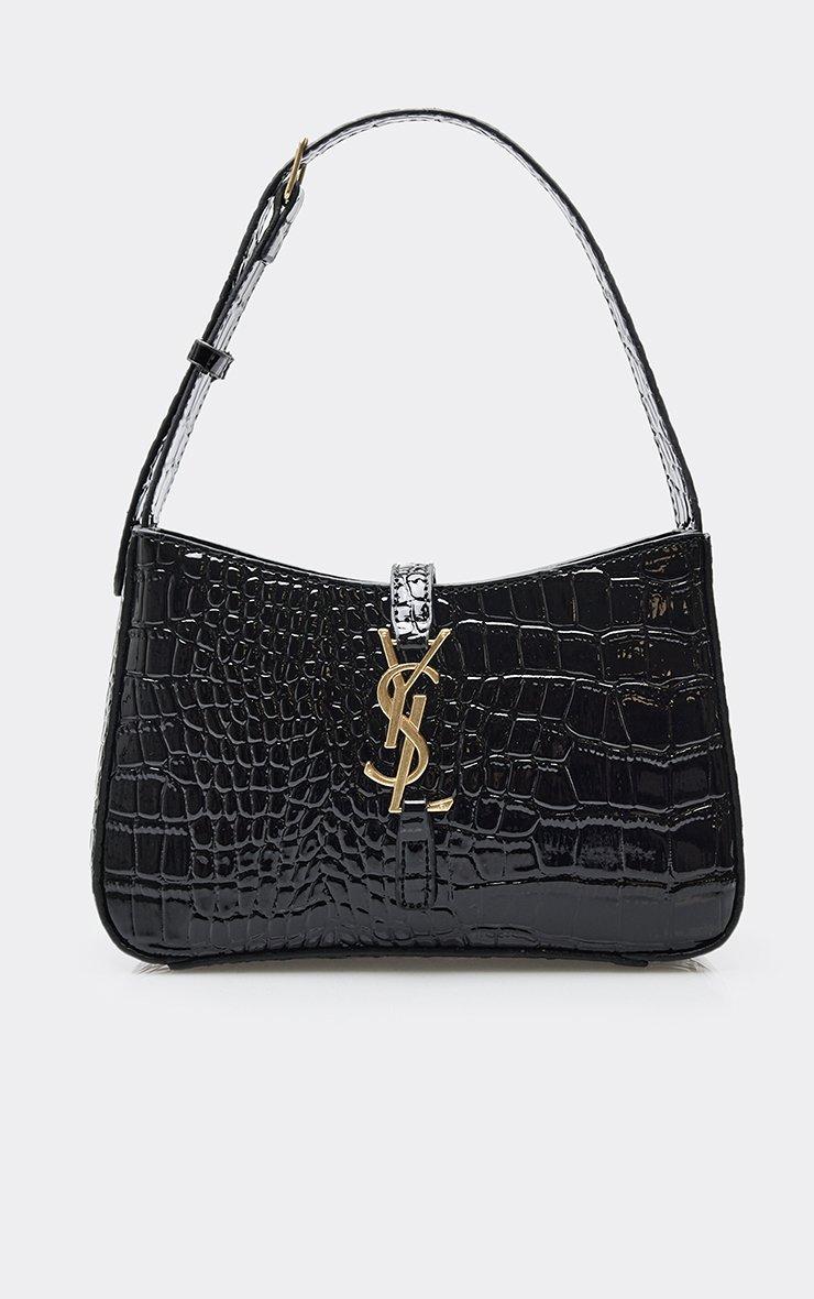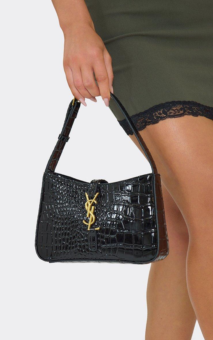 Step into the spotlight and make the pavement your catwalk with this textured must-have that’s pure it-girl energy. Featuring black croc print patent material with silver logo detailing, this rectangle shoulder bag is giving pure 90s nostalgia. The sleek finish and sharp silhouette make it a total wardrobe must-have for every it-girl.