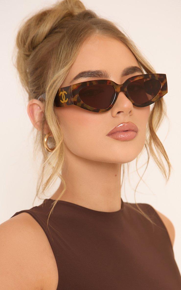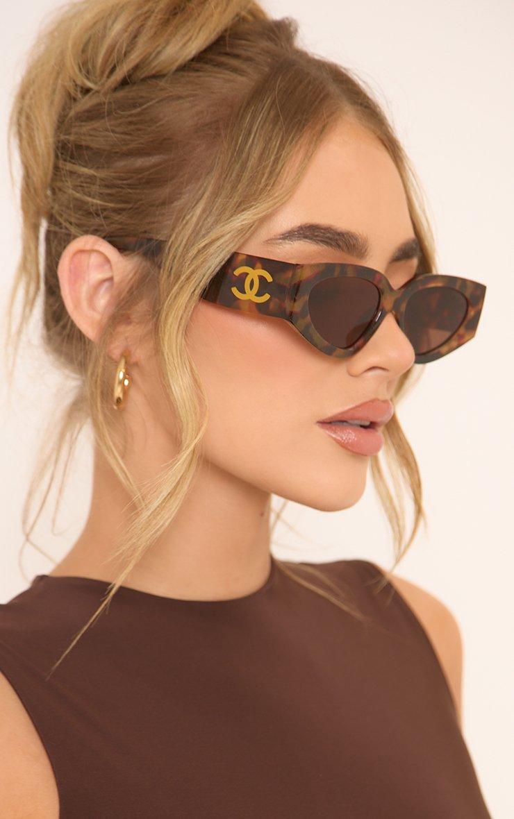 Turn heads in style, doll! These angular-shaped chunky frame sunglasses in leopard print feature side logo detailing, adding a bold and edgy touch to your look. Perfect for making a fierce statement wherever you go!