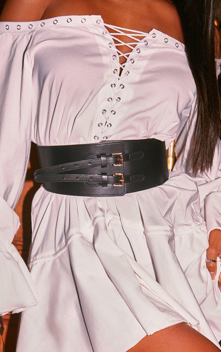 Chunky Double Buckle Strap Belt In Black