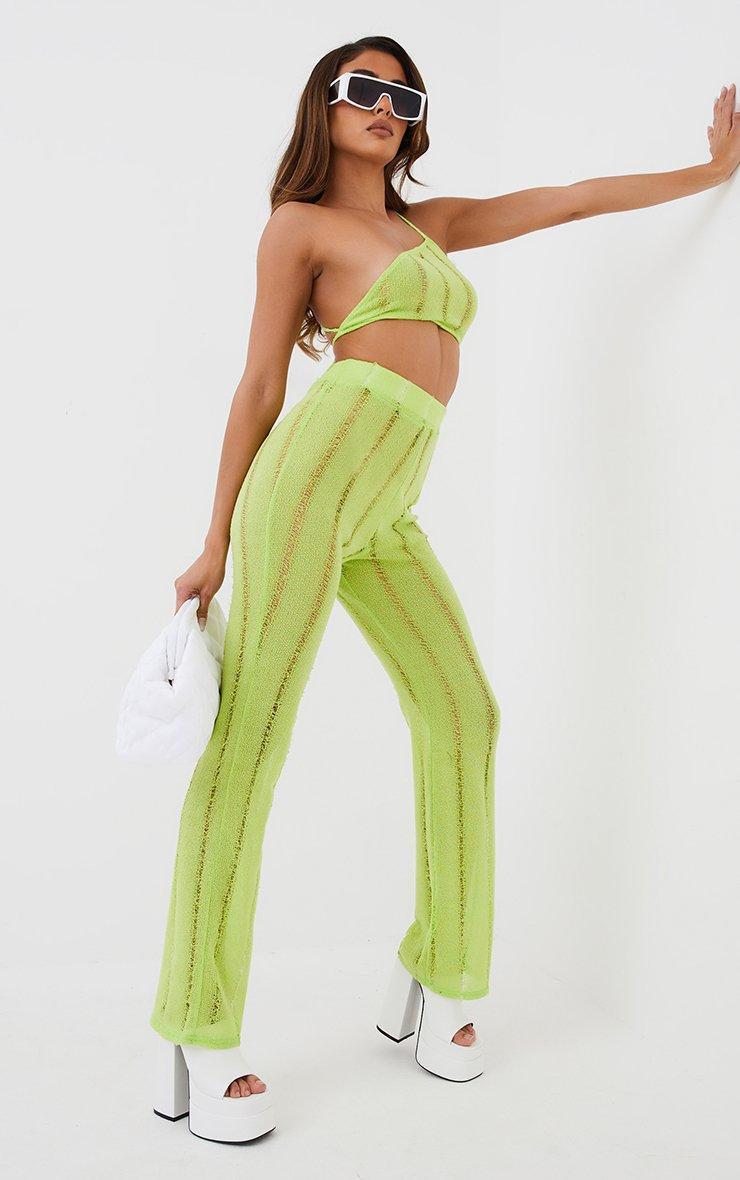 Make a statement with a pop of colour doll. Featuring a lime green ladder knit material, with a one shoulder asymmetric neckline, a tie back design and a cropped length. We love this teamed with the matching trousers.