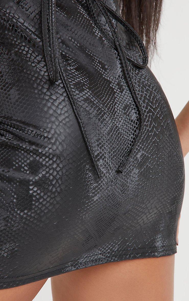 High Waist Mini Bodycon Skirt In Black Snake Print Faux Leather