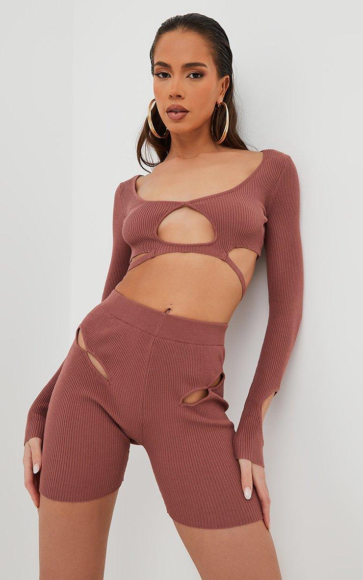 This colour is at the top of our hitlist and we're loving this top doll. Featuring a mocha brown knitted material, cut-out detailing and a cropped length. Team this with the matching shorts and boots for an effortless look we love.