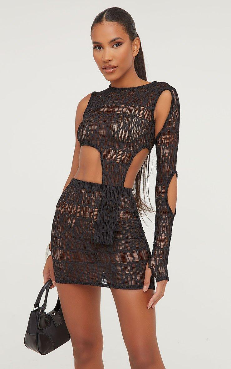 Add some texture to your going out look doll. Featuring a black fishnet material, with a high waist, a mini length and a figure hugging fit. Team with the matching top for a killer combo.