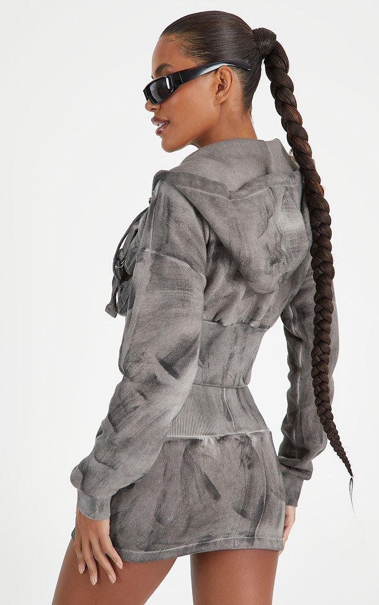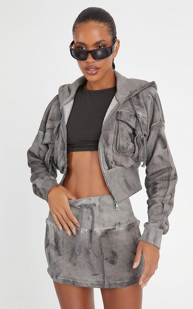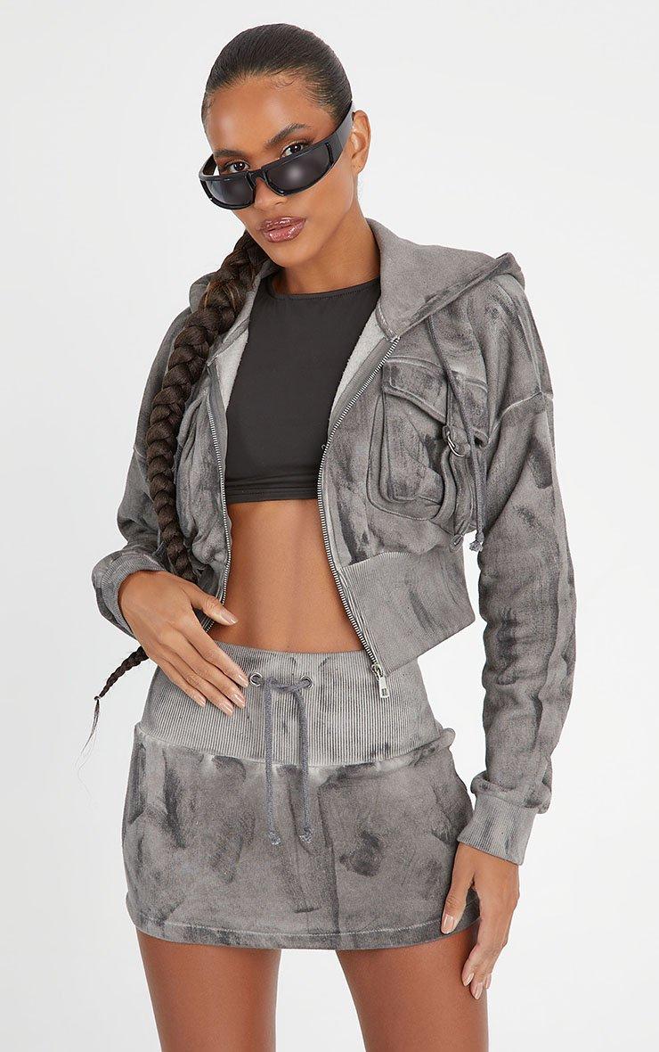 Elevate your new season look with this must have skirt. Featuring a grey acid wash sweat material, with tie front detailing and a mini length. Style with the matching hoodie to shop the whole look.
