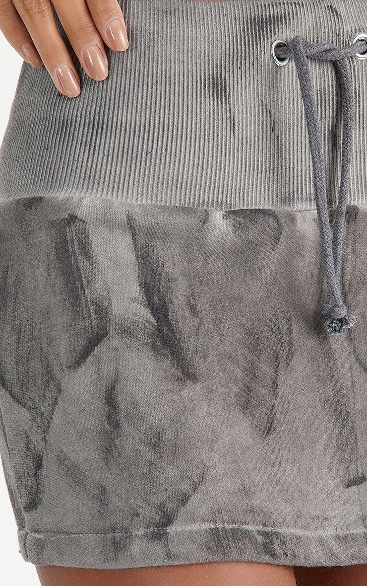 Tie Front Mini Skirt In Grey Acid Wash Sweat