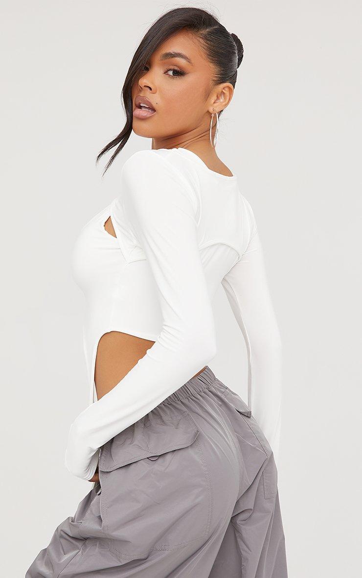 Hit refresh on your new season wardrobe with this top doll. Featuring a white slinky material, a double layer design, long sleeves and a cropped length.