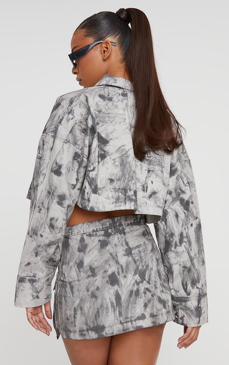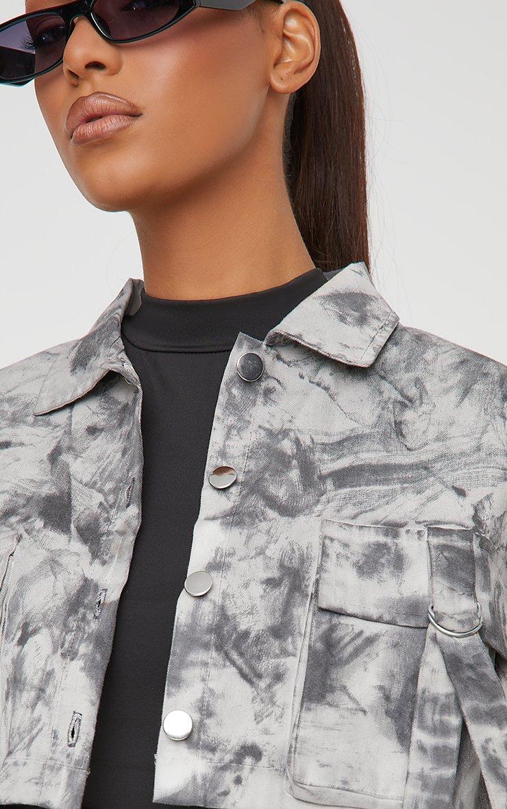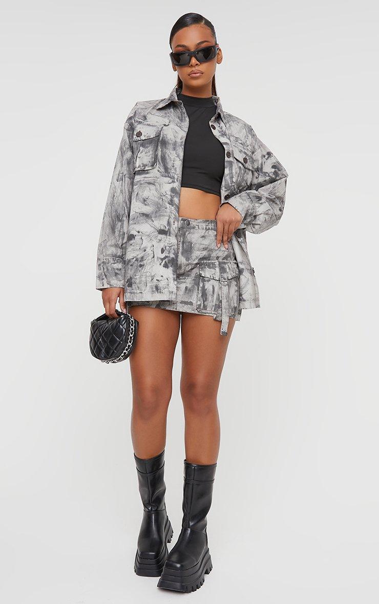 Oversized Belt Detail Cargo Style Cropped Jacket In Grey Acid Wash