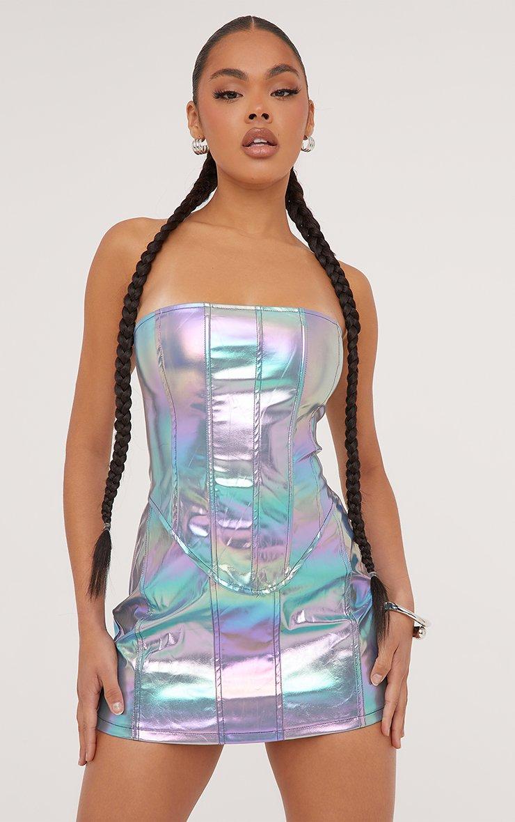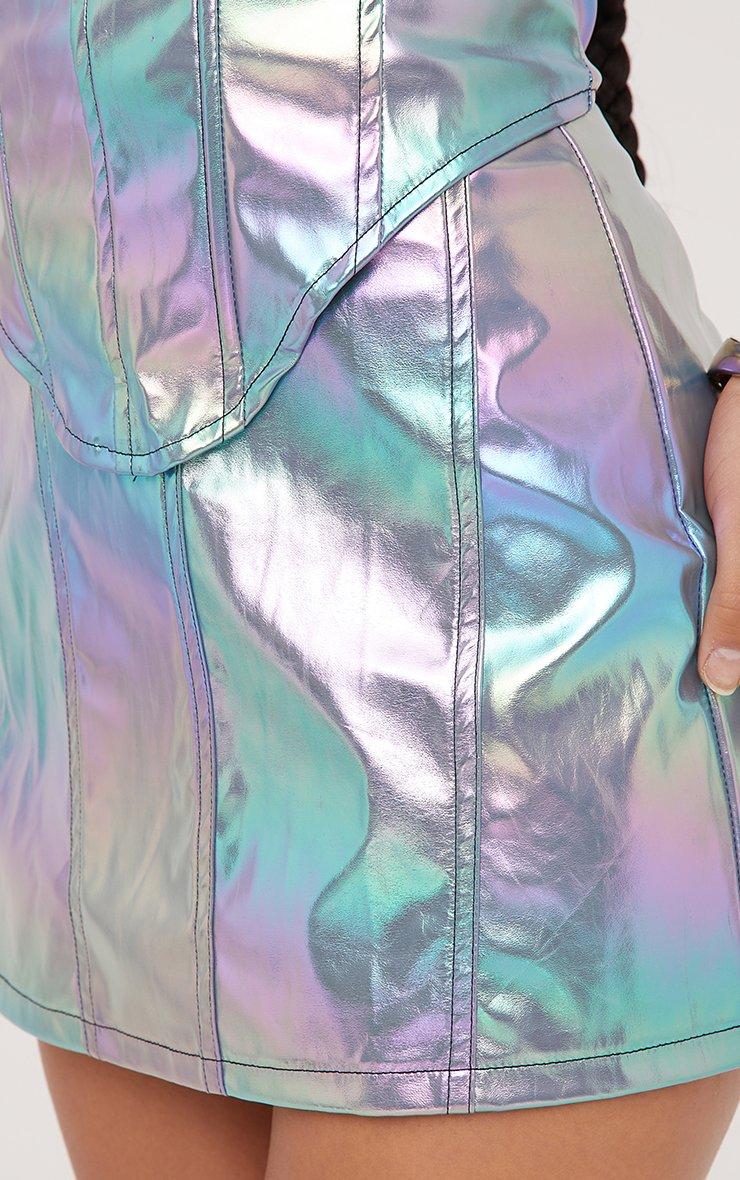 High Waist Structured Detail Mini Bodycon Skirt In Blue Holographic