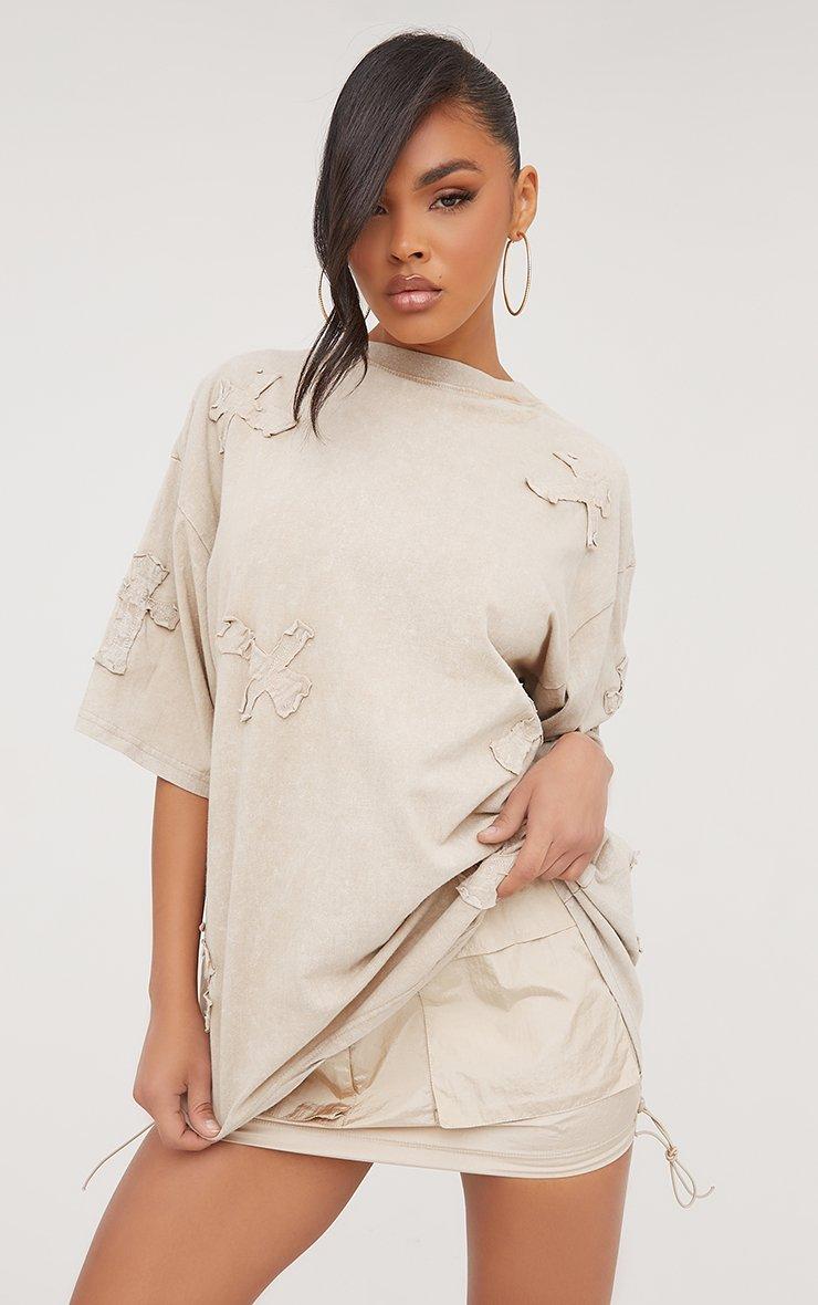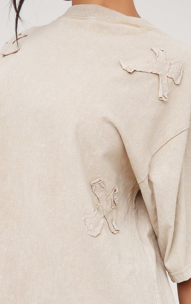 This t-shirt is at the top of our hitlist doll. Featuring a beige material, crucifix detailing and an oversized fit. Team this with a mini skirt and heels for a day drinkin' look we love.