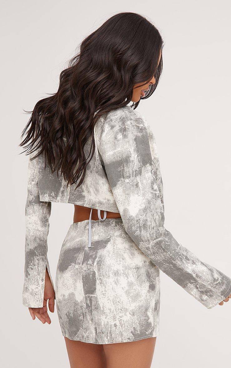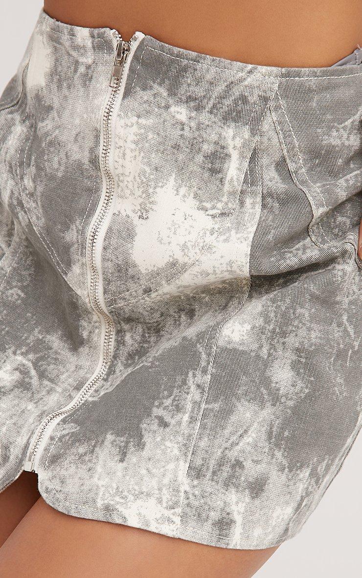 High Waist Zip Front Detail Mini Bodycon Skirt In Cream Acid Wash