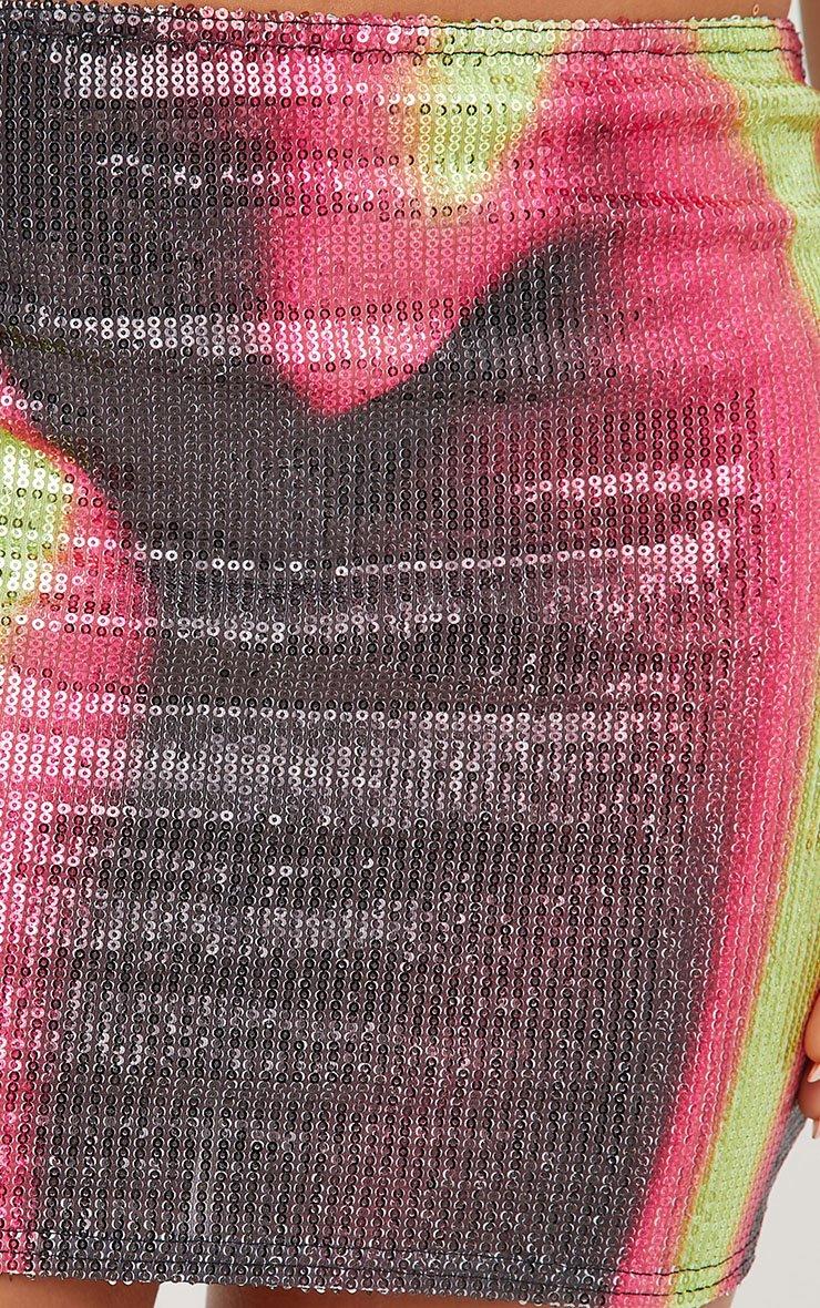 High Waist Body Print Mini Bodycon Skirt In Multi Lime Sequin