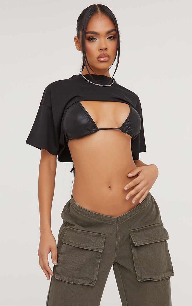 It's all about the layering doll. Featuring a black material, with short sleeves, an extreme cropped length and a t-shirt design.