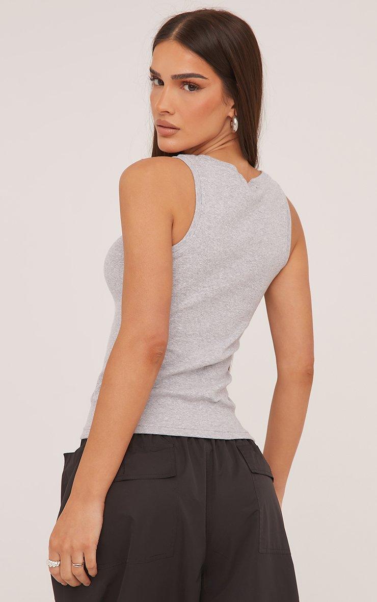 Scoop Neck Swirl Graphic Print Vest In Grey Ribbed