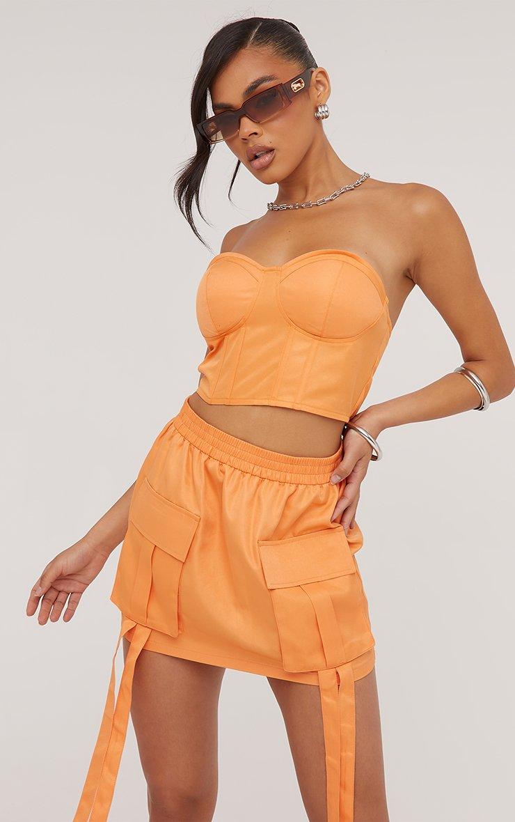 Hit refresh on your new season wardrobe with this skirt girl. Featuring an orange material, a high waist, strap detailing and a mini length.