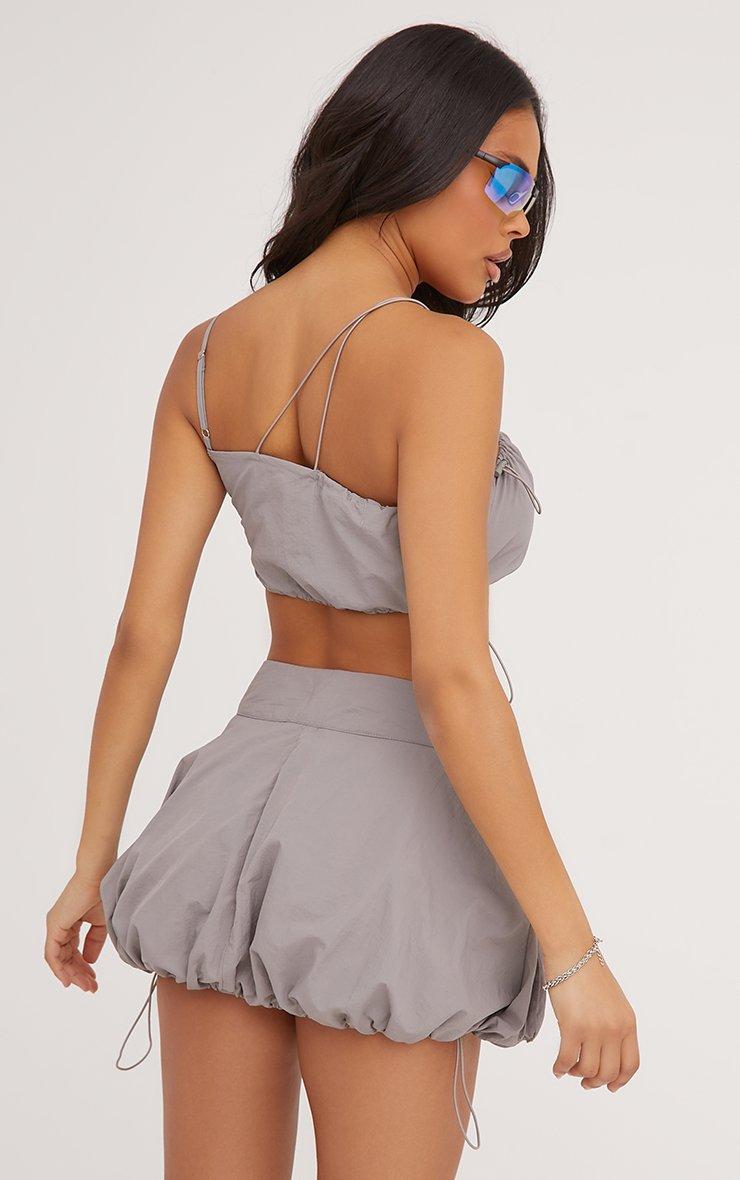 This top is a yes from us girl. Featuring a grey parachute material, strappy detailing and a cropped length.