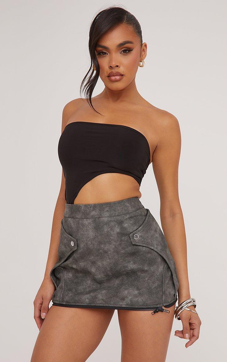Be the centre of attention with this skirt doll. Featuring a charcoal acid faux leather material, a high waist, a zip detail and a mini length.