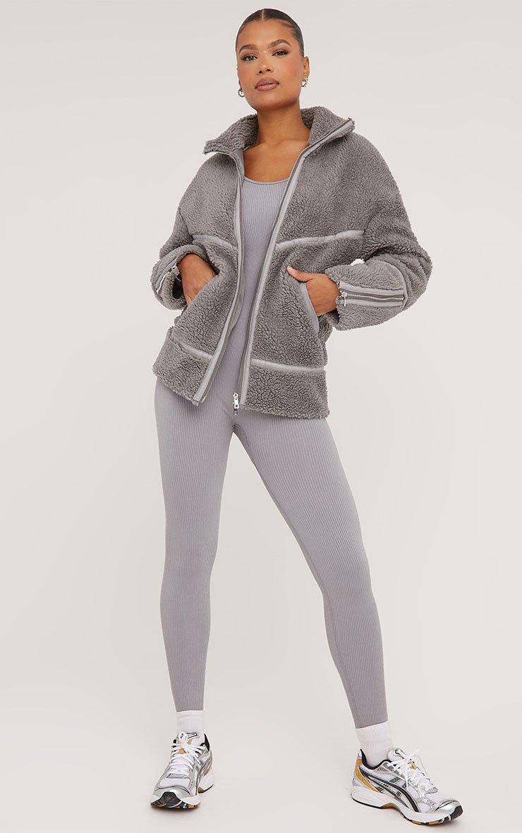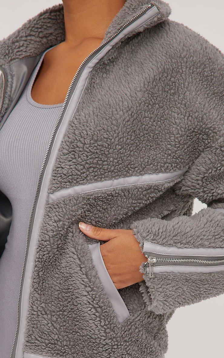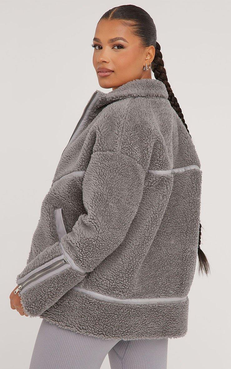 Give your look a cosy feel with this must have coat. Featuring a grey borg material, with contrast piping detailing and an oversized fit.