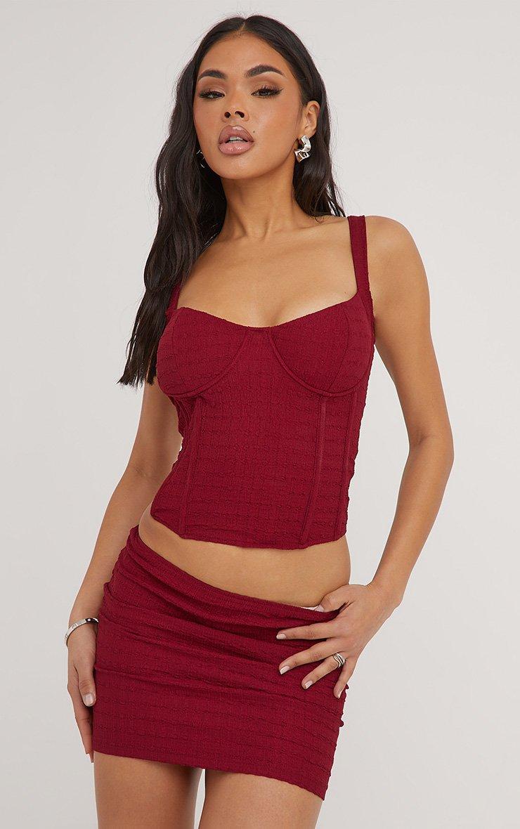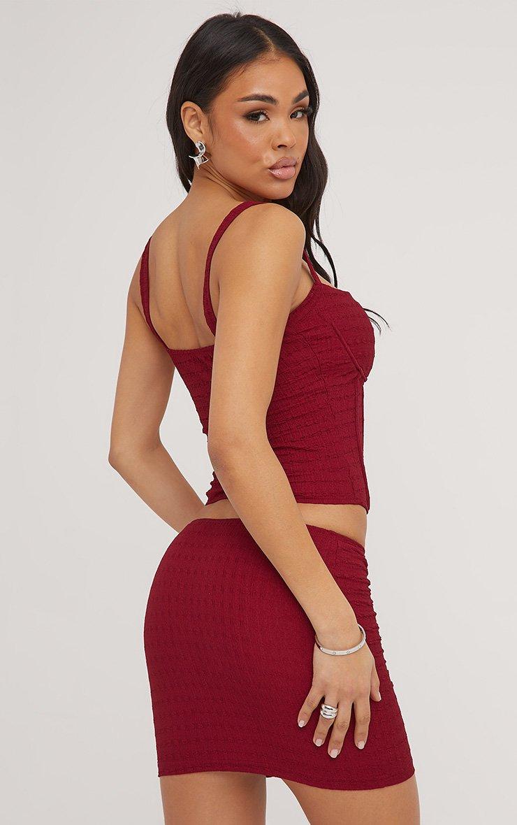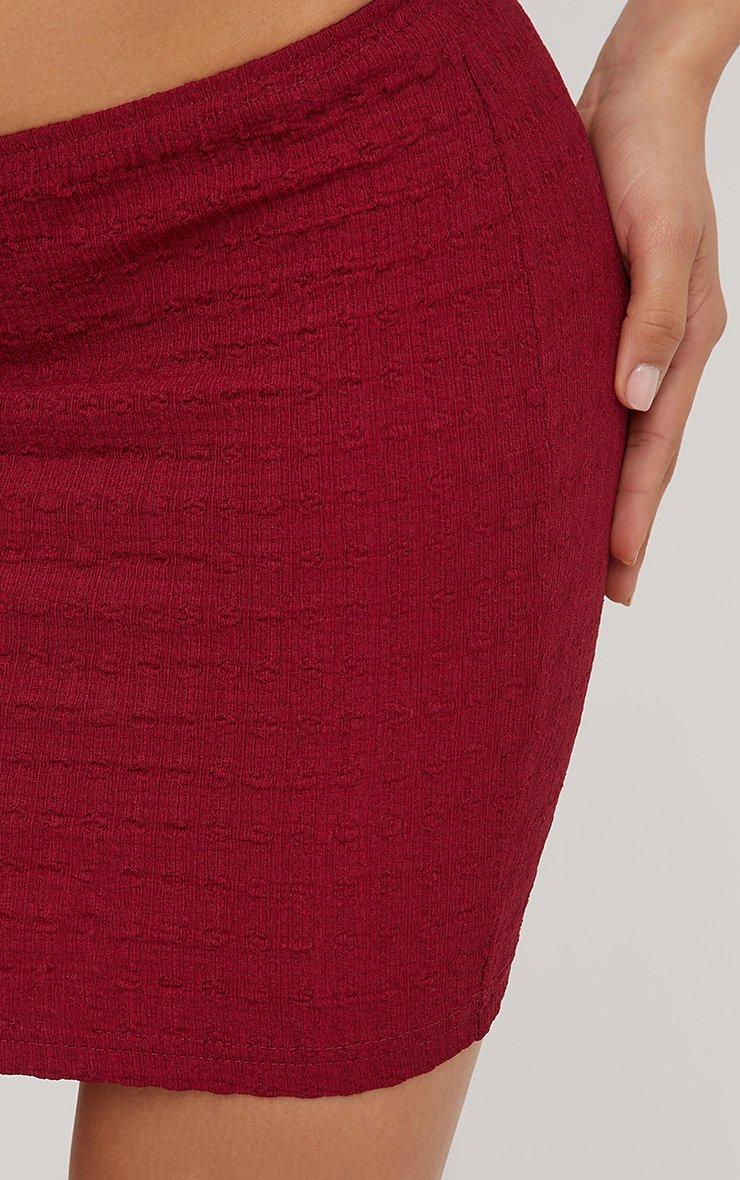 Low Rise Mini Bodycon Skirt In Cherry Red Texture