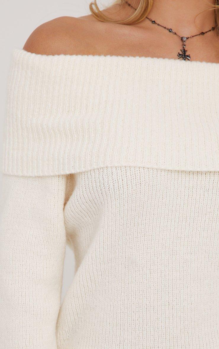 Stay on trend these AW with this must have jumper. Featuring a cream knit material and a bardot neckline.