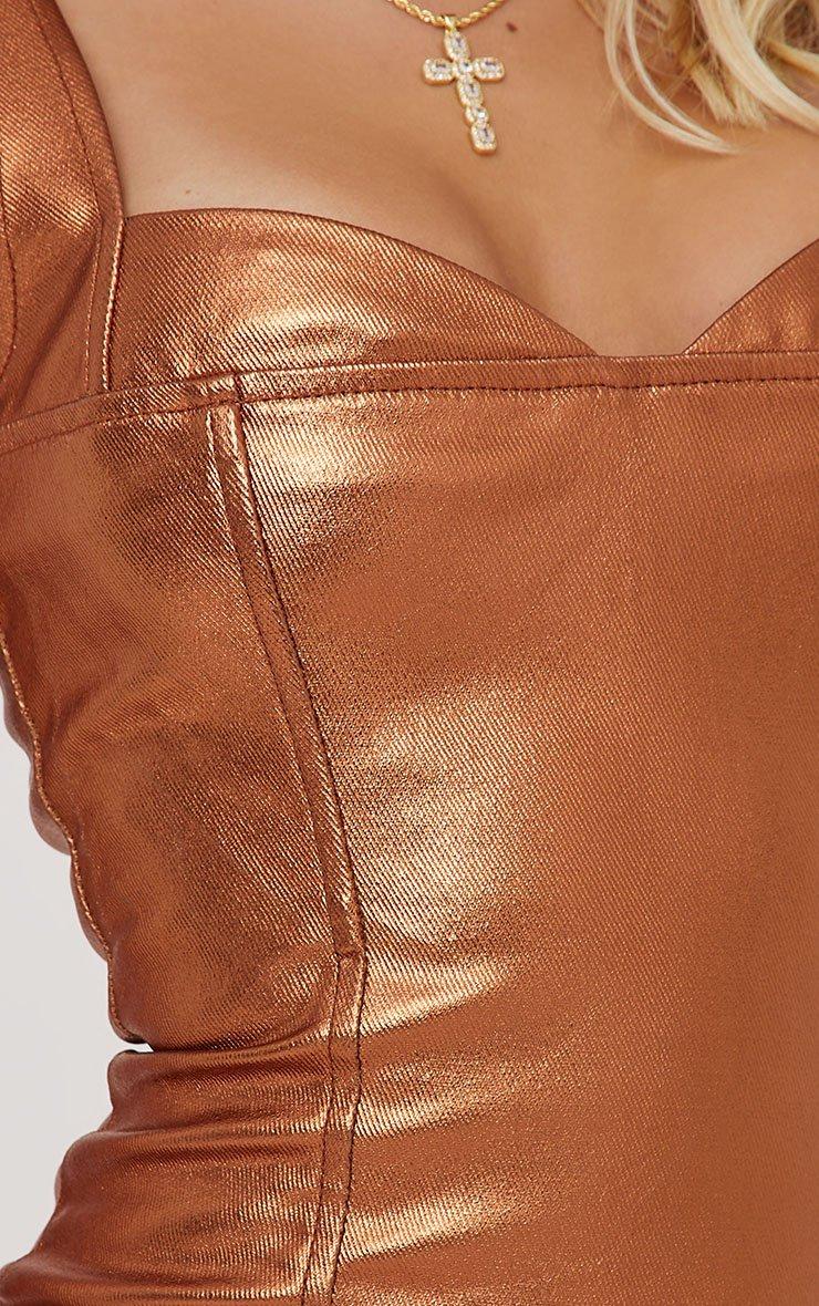 Sweetheart Neck Mini Bodycon Dress In Bronze Metallic Coated Denim