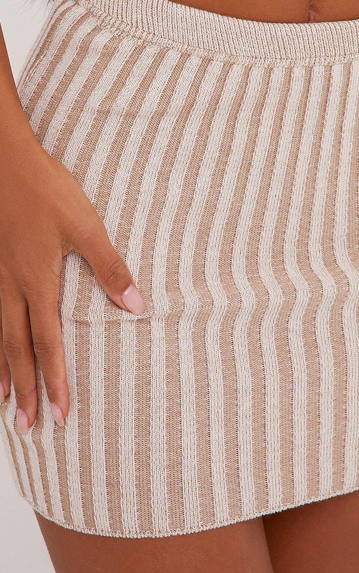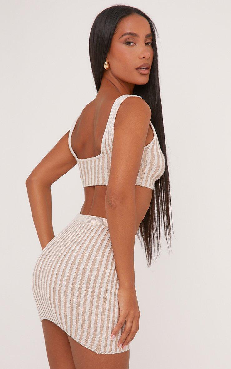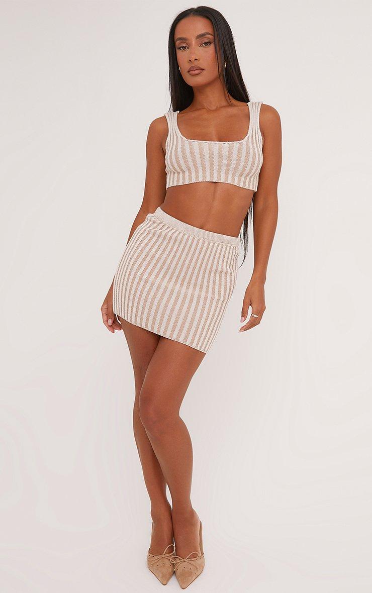 Two Tone High Waist Mini Bodycon Skirt In Stone Rib Knit