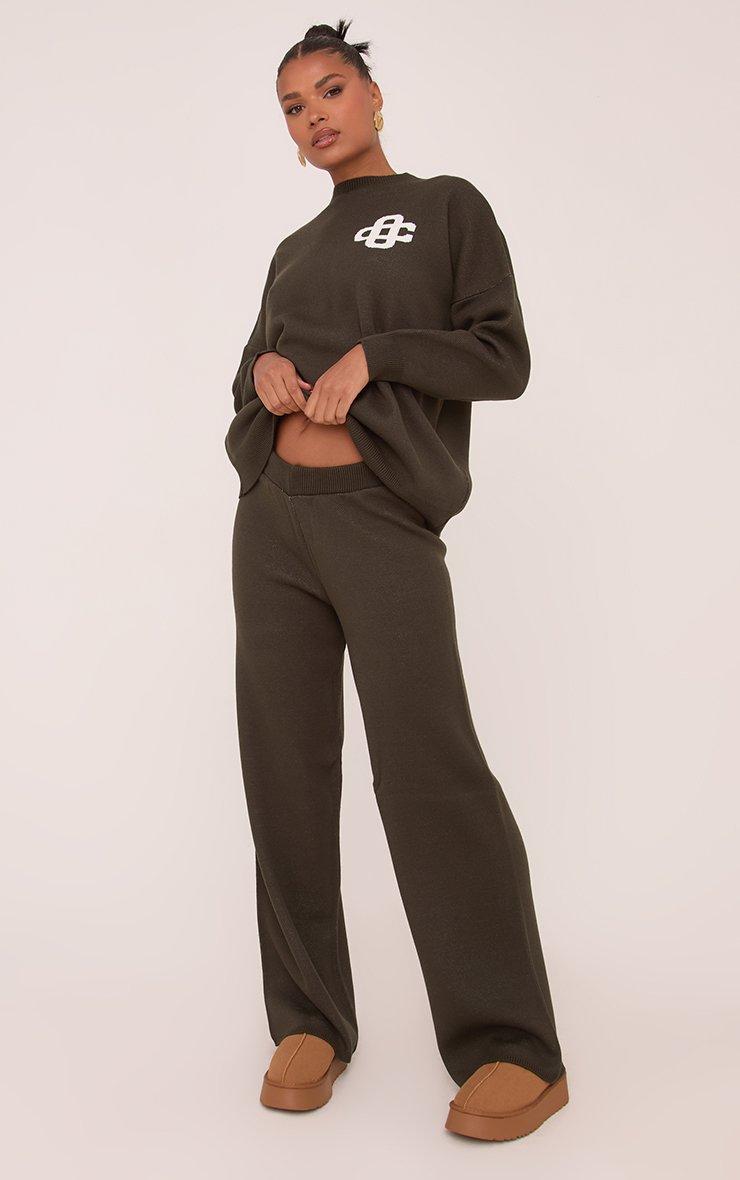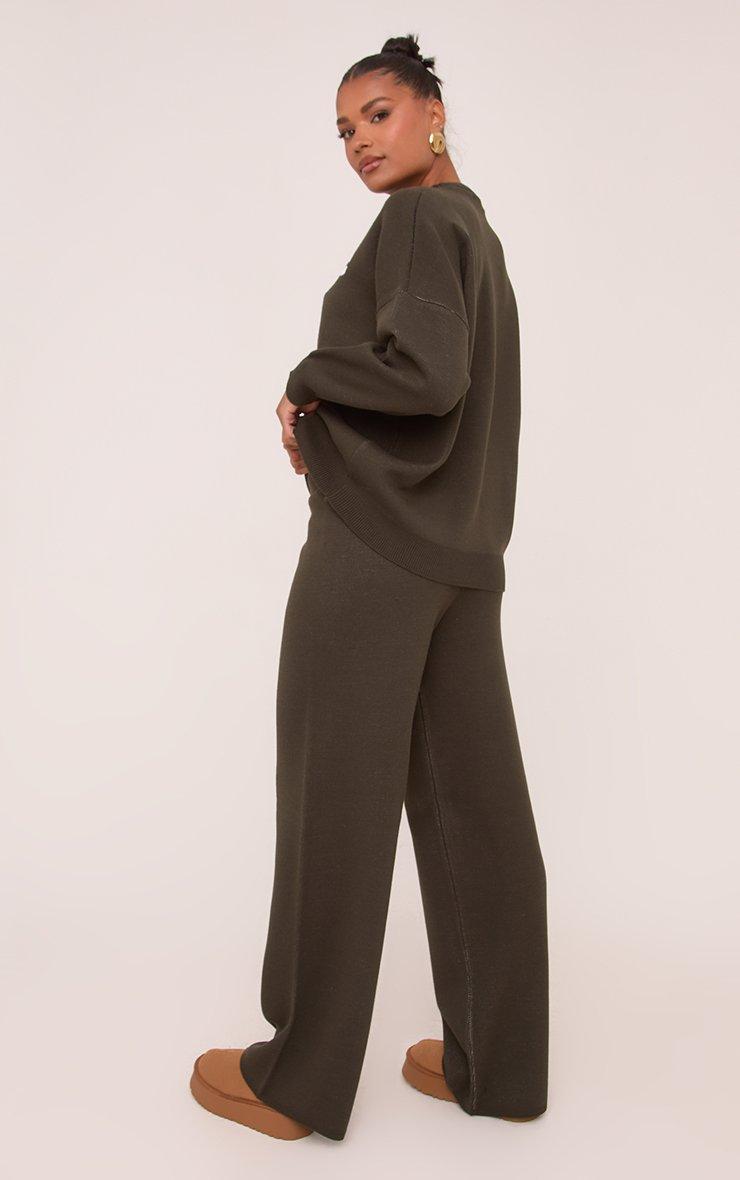 Wrap yourself in ultimate comfort with these High Waist Wide Leg Joggers In Dark Khaki Knit. These khaki knitted joggers feature a flattering high waist fit and wide leg cut for a snug and stylish look. Pair with these joggers with the matching jumper for a chill-day look that’s still serves!
