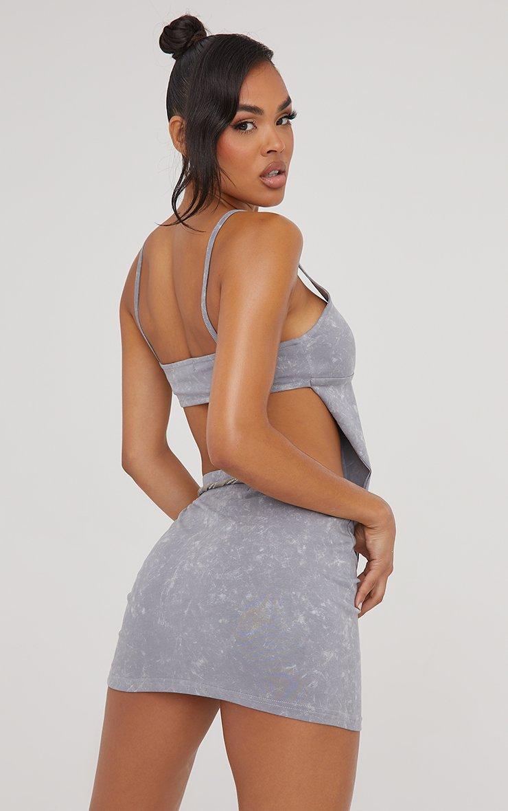 High Waist Mini Bodycon Skirt In Washed Grey