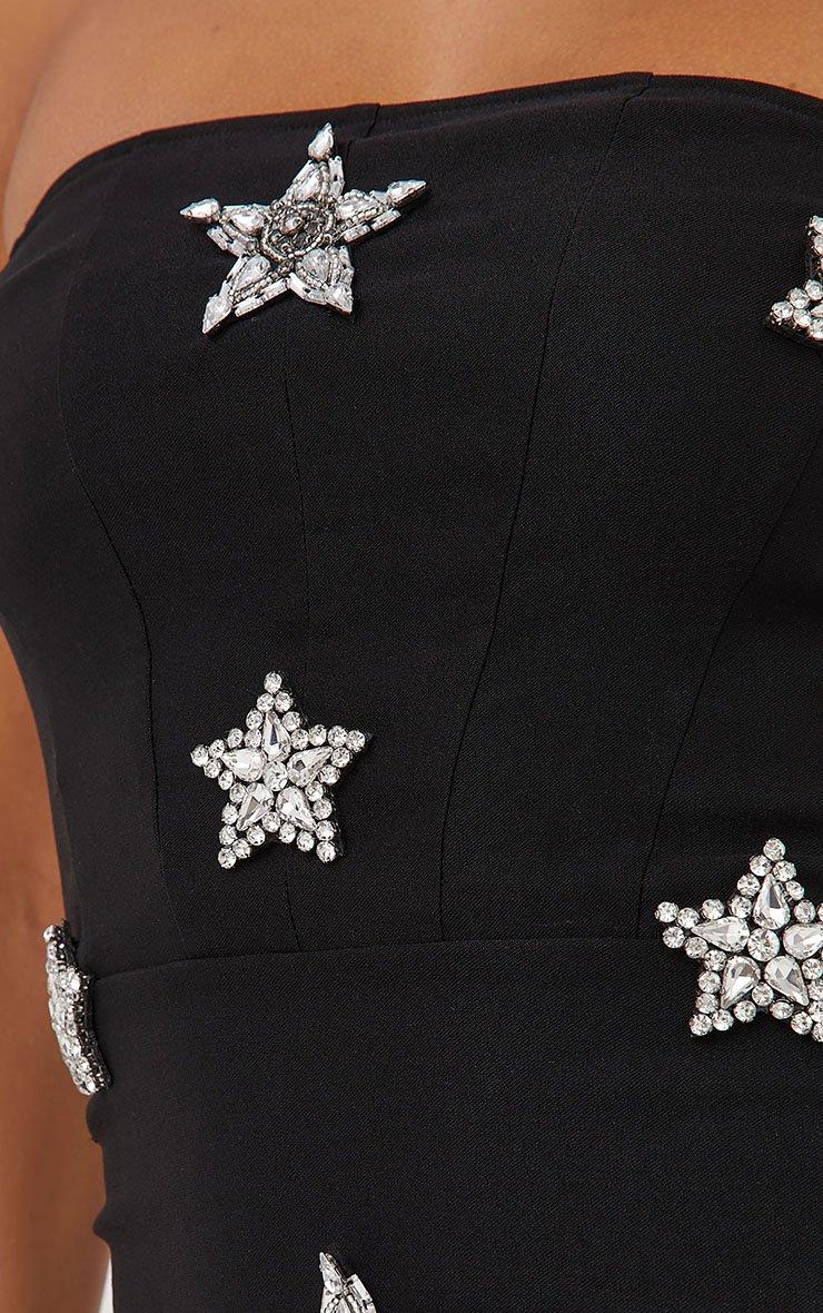Bandeau Embellished Star Detail Mini Bodycon Dress In Black