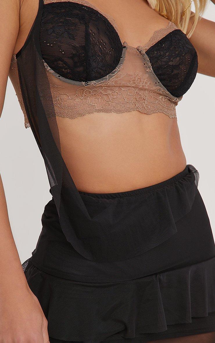 Cupped Contrast Lace Cut Out Front Frill Detail Mini Dress In Black