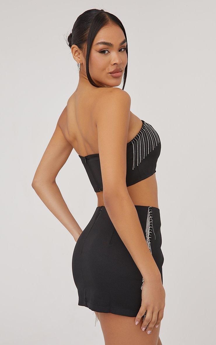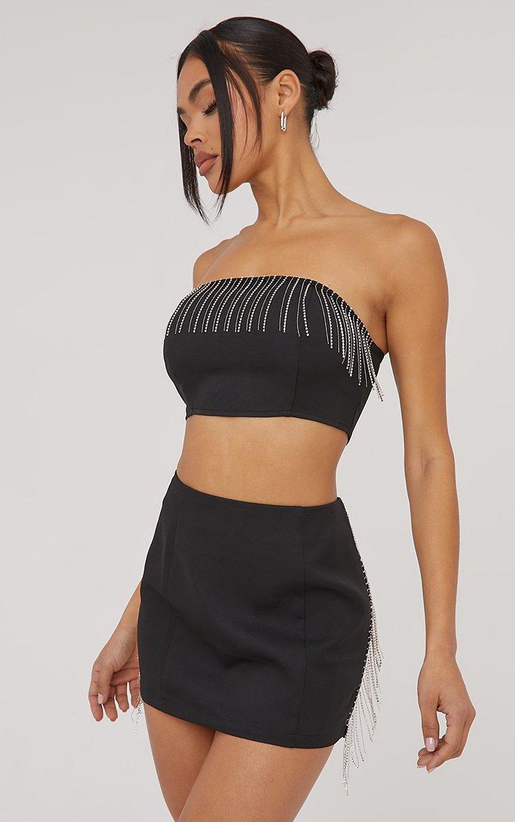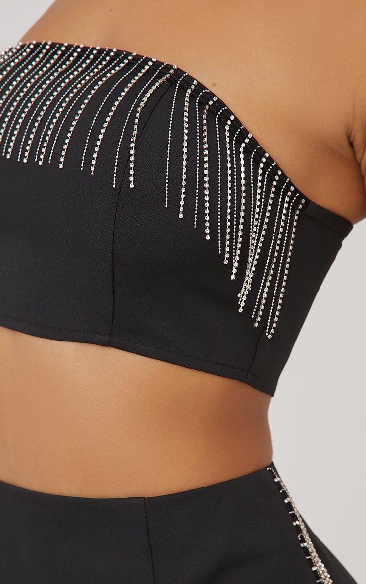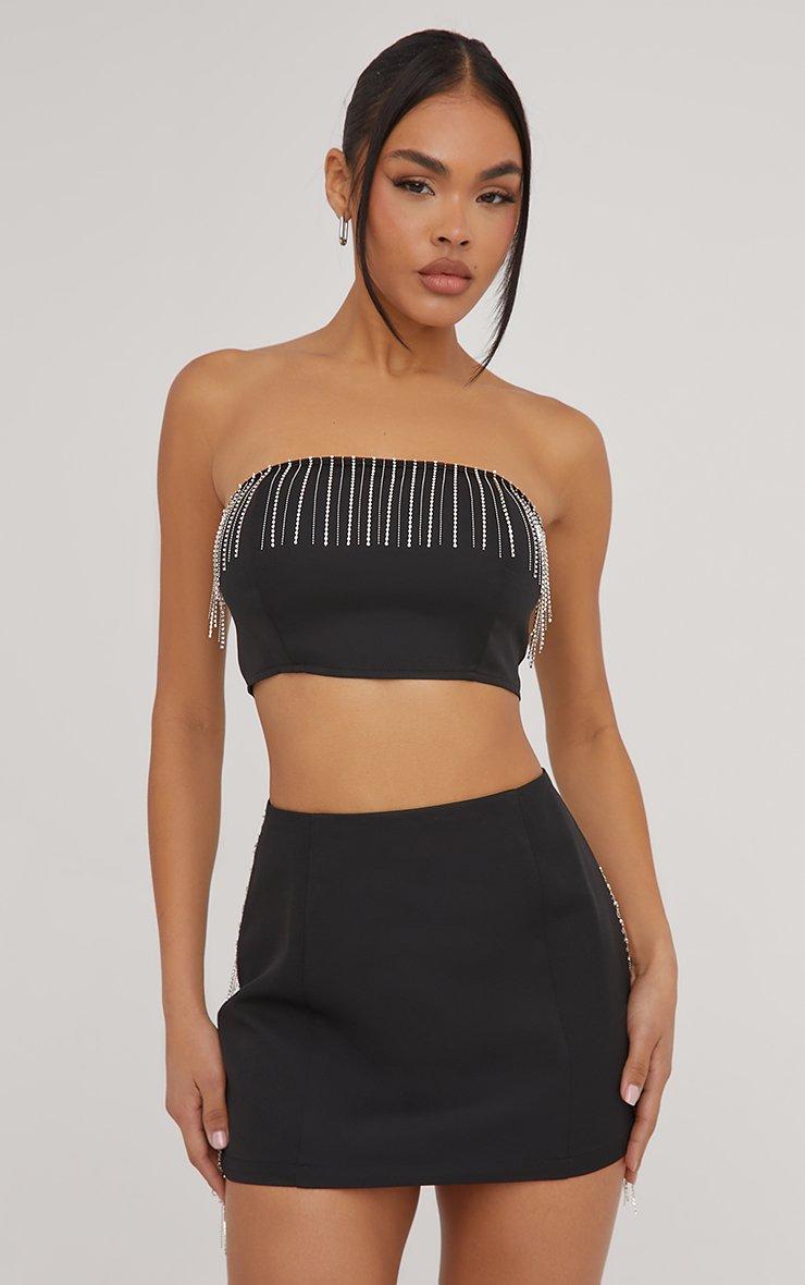 Bandeau Diamante Tassel Detail Crop Top In Black Woven