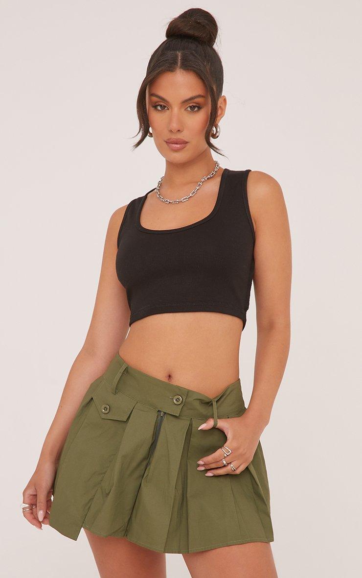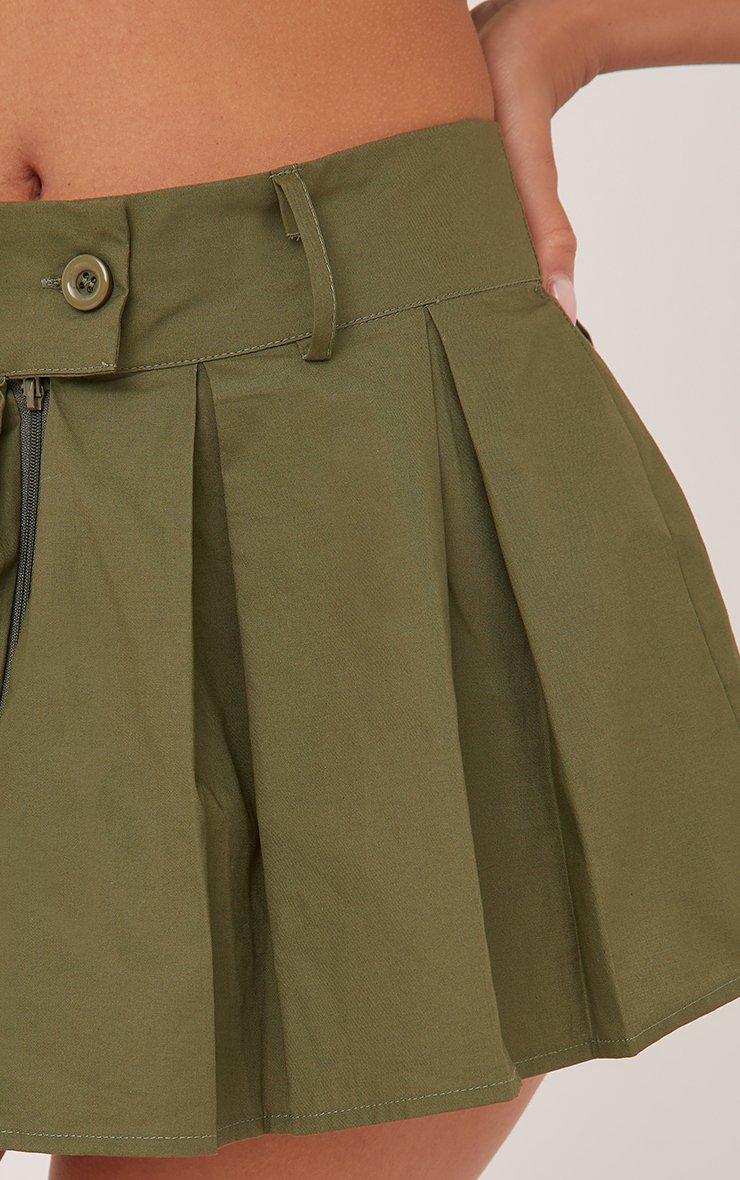 Mid Rise Pocket Detail Pleated Mini Skirt In Khaki Green Woven