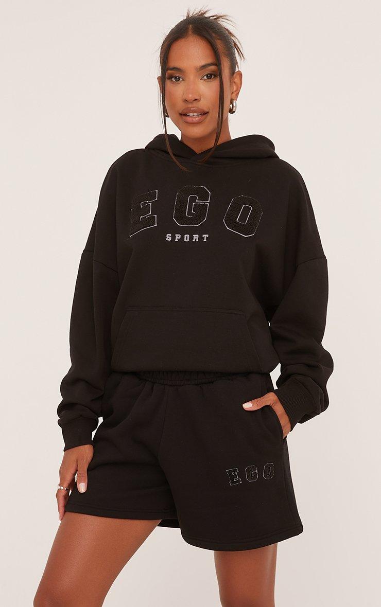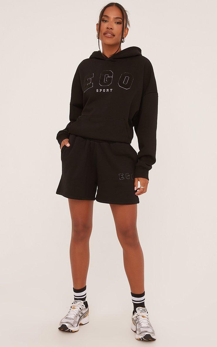 These lounge shorts are a piece you'll reach for time and time again doll. Featuring a black material, a high waist, a sweat short design and an Ego slogan print.