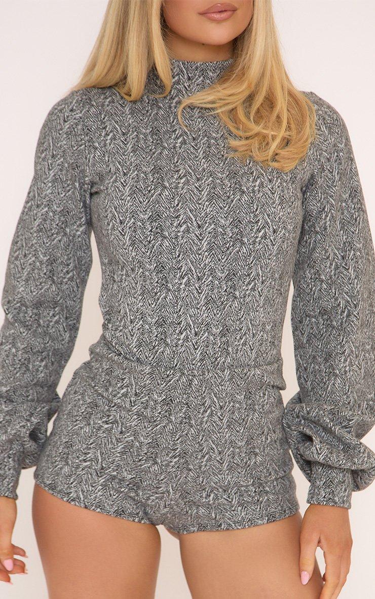 Long Sleeve High Neck Bodysuit In Grey Texture