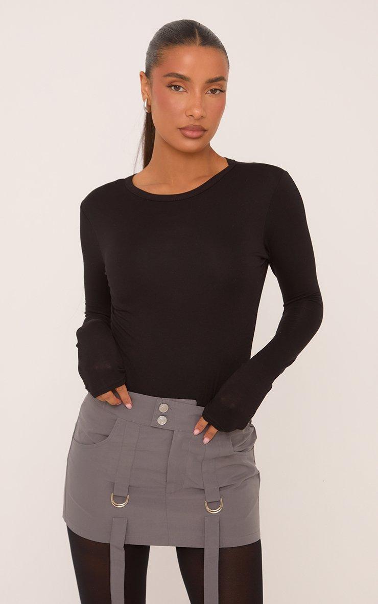 Low Rise Suspender Belt Detail Mini Bodycon Cargo Skirt In Grey