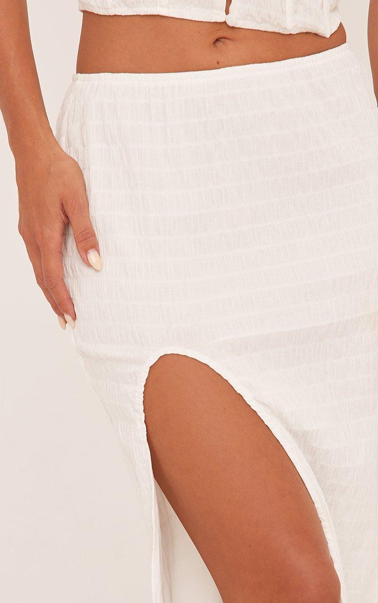 Mid Rise Split Leg Maxi Skirt In White Texture