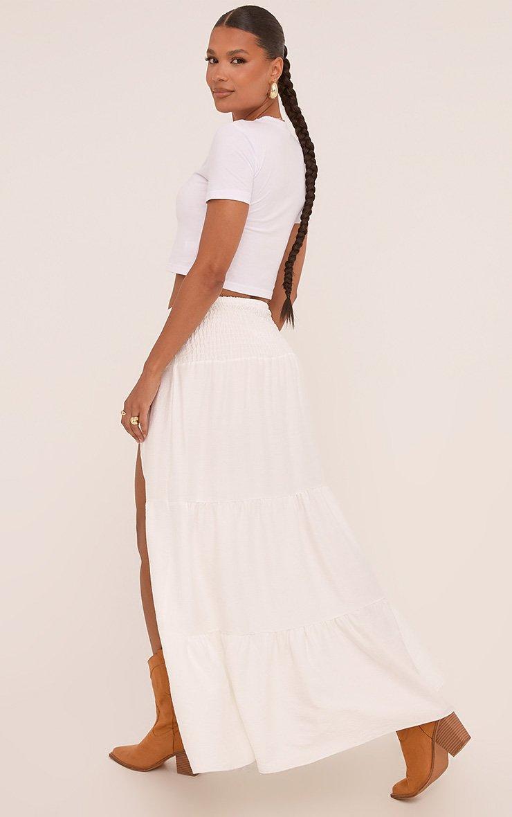 High Waist Side Split Tiered Maxi Skirt In White