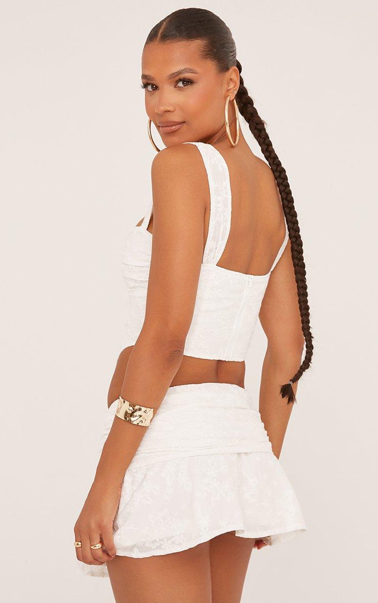 Low Rise Ruched Detail Broderie Mini Skirt In White