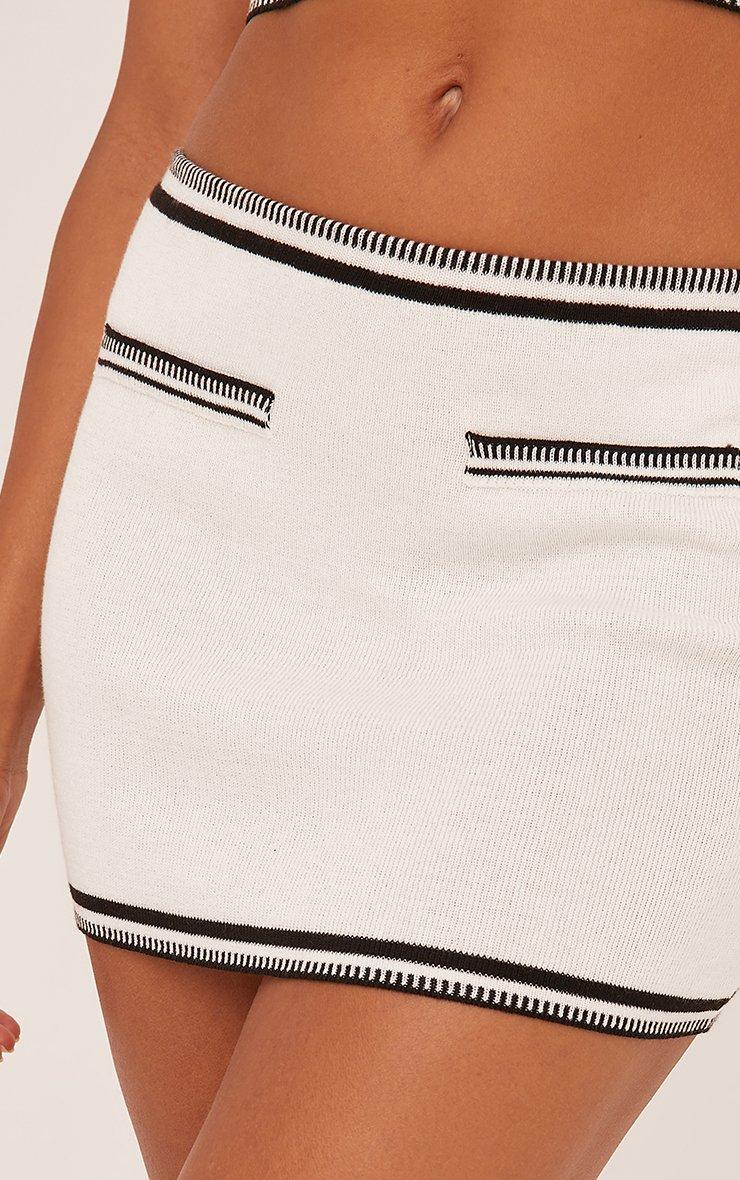 Low Rise Contrast Binding Mini Skirt In White Knit