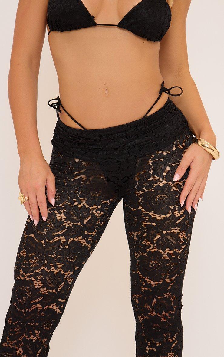 Chill in style, doll! Featuring black fabric with a low-rise fit, fold-over waistband, and straight leg detailing, these beach trousers bring laid-back vibes—perfect for sun-soaked days and breezy evenings!