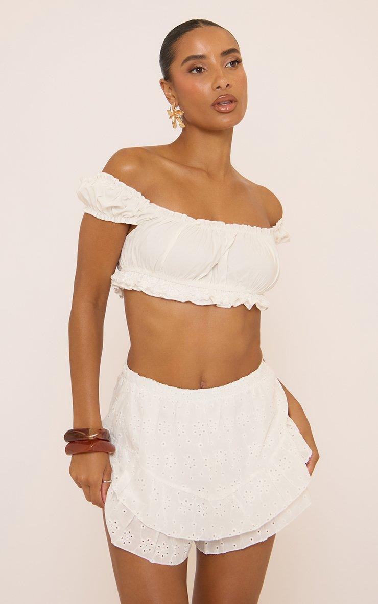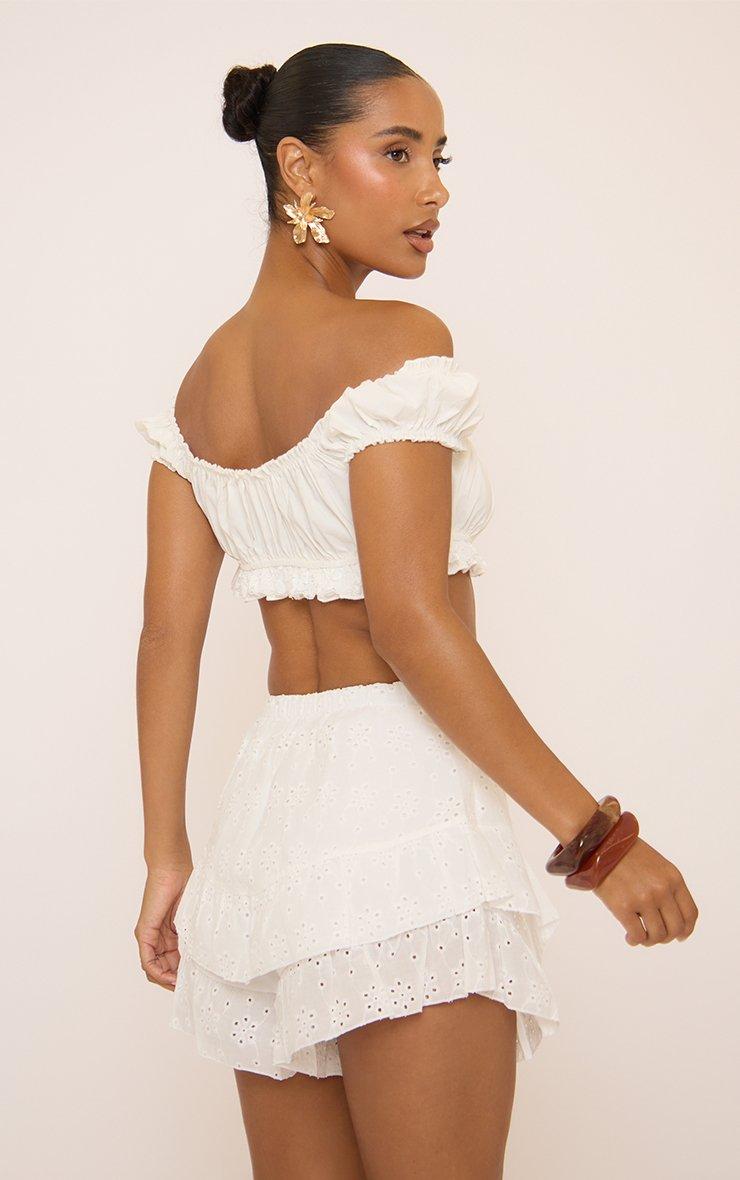 High Rise Tiered Hem Shorts In White Broderie